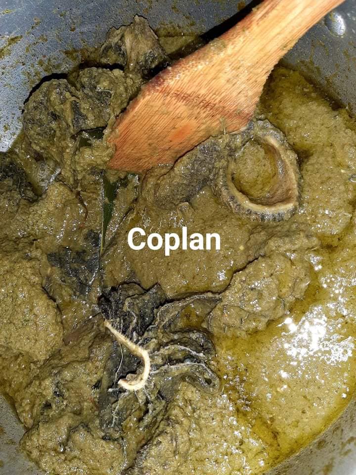 - Chauffer de l’huile dans une casserole faire rissoler les oignons et les tripes et ajouter la sauce verte écrasée lodjom saler légèrement et laisser cuire à découvert pendant 10 minutes ajouter le curry et rectifier l’assaisonnement. Finir à feu doux