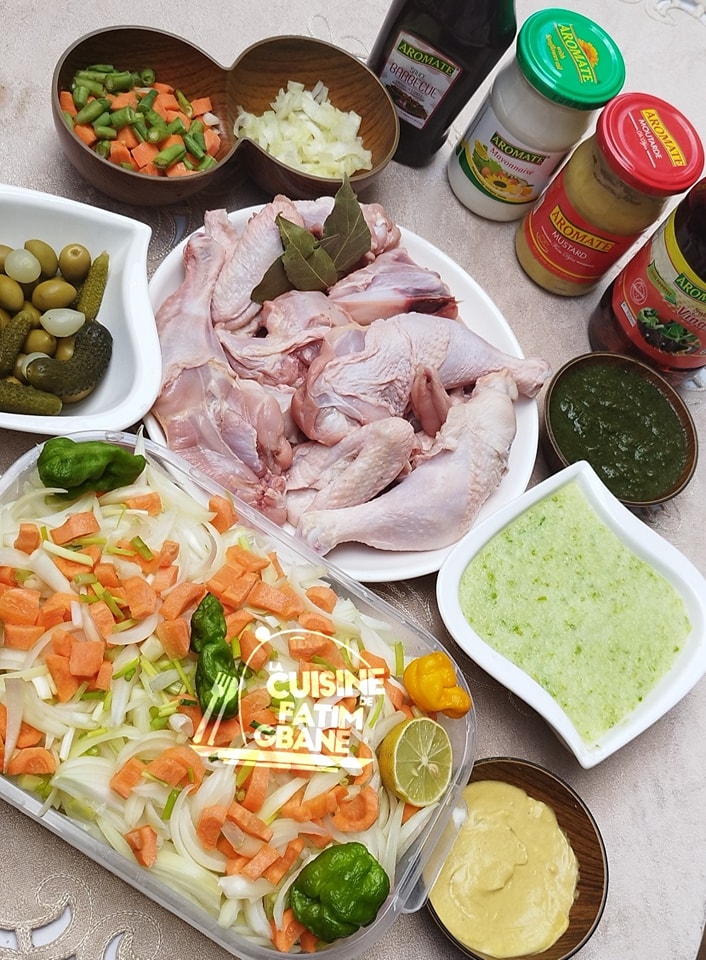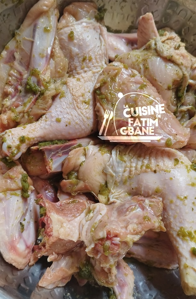 - Mariner le poulet avec une marinade composée de persil, d’ail, de poivre et du céleri de citron, du sel et un bouillon Aromate saveur poulet (j’ai laissé mariné toute la nuit)