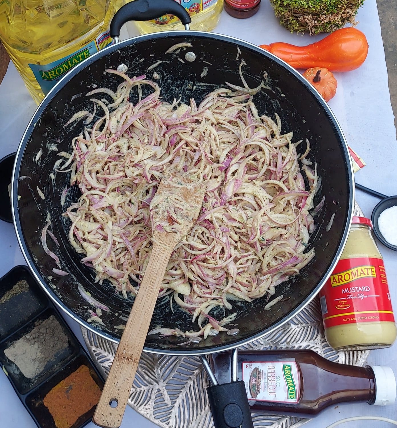 Renversez les oignons émincés dans un grand récipient, assaisonner avec les mêmes ingrédients utilisés pour la marinade