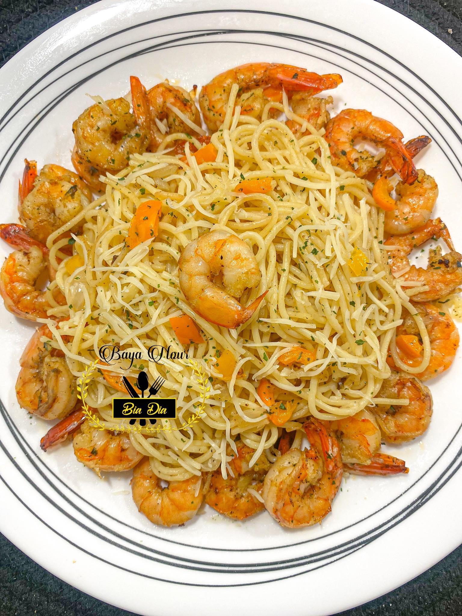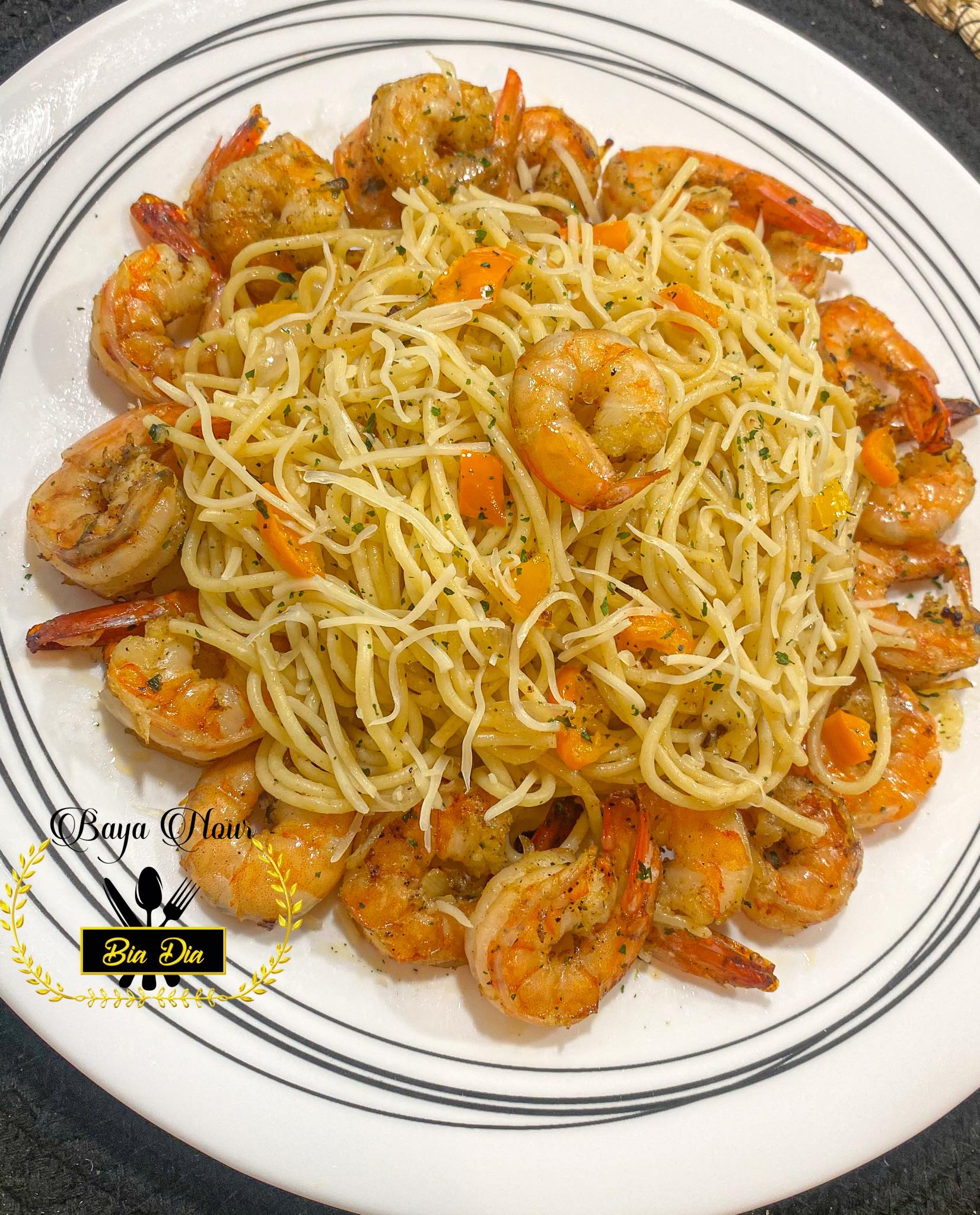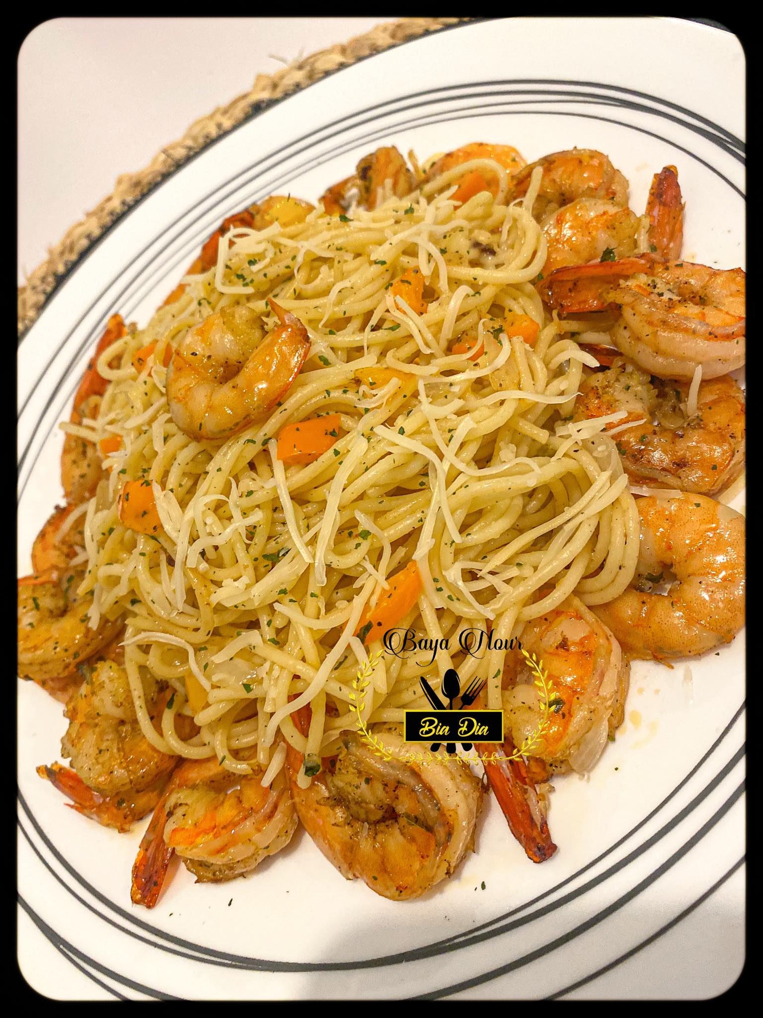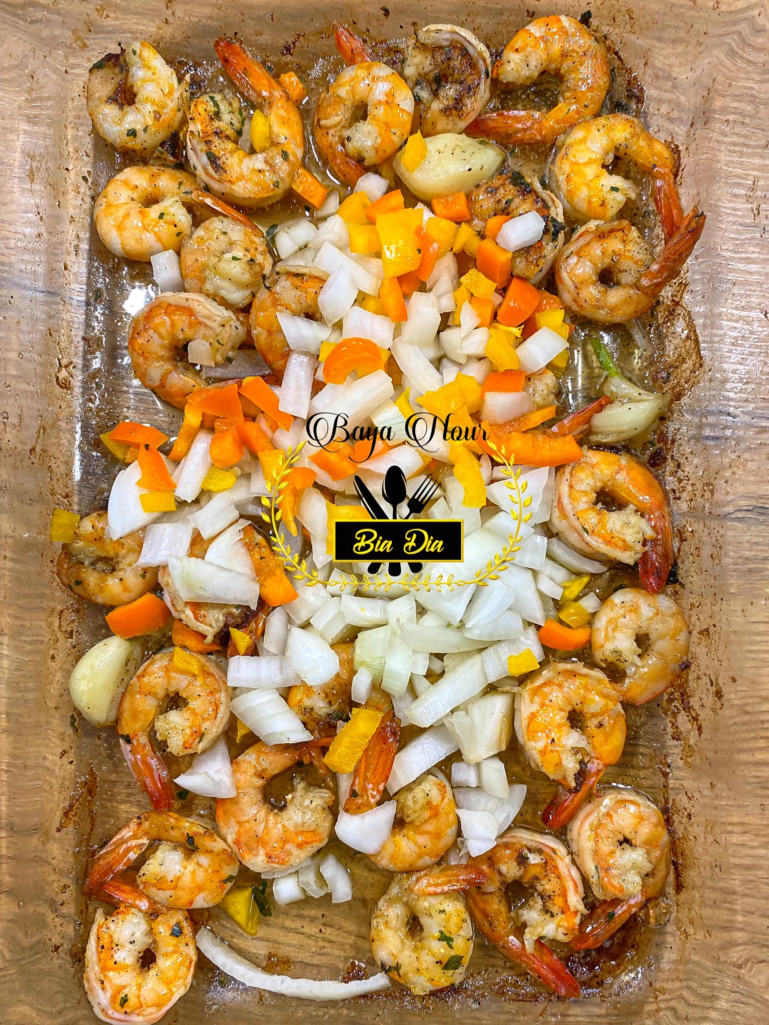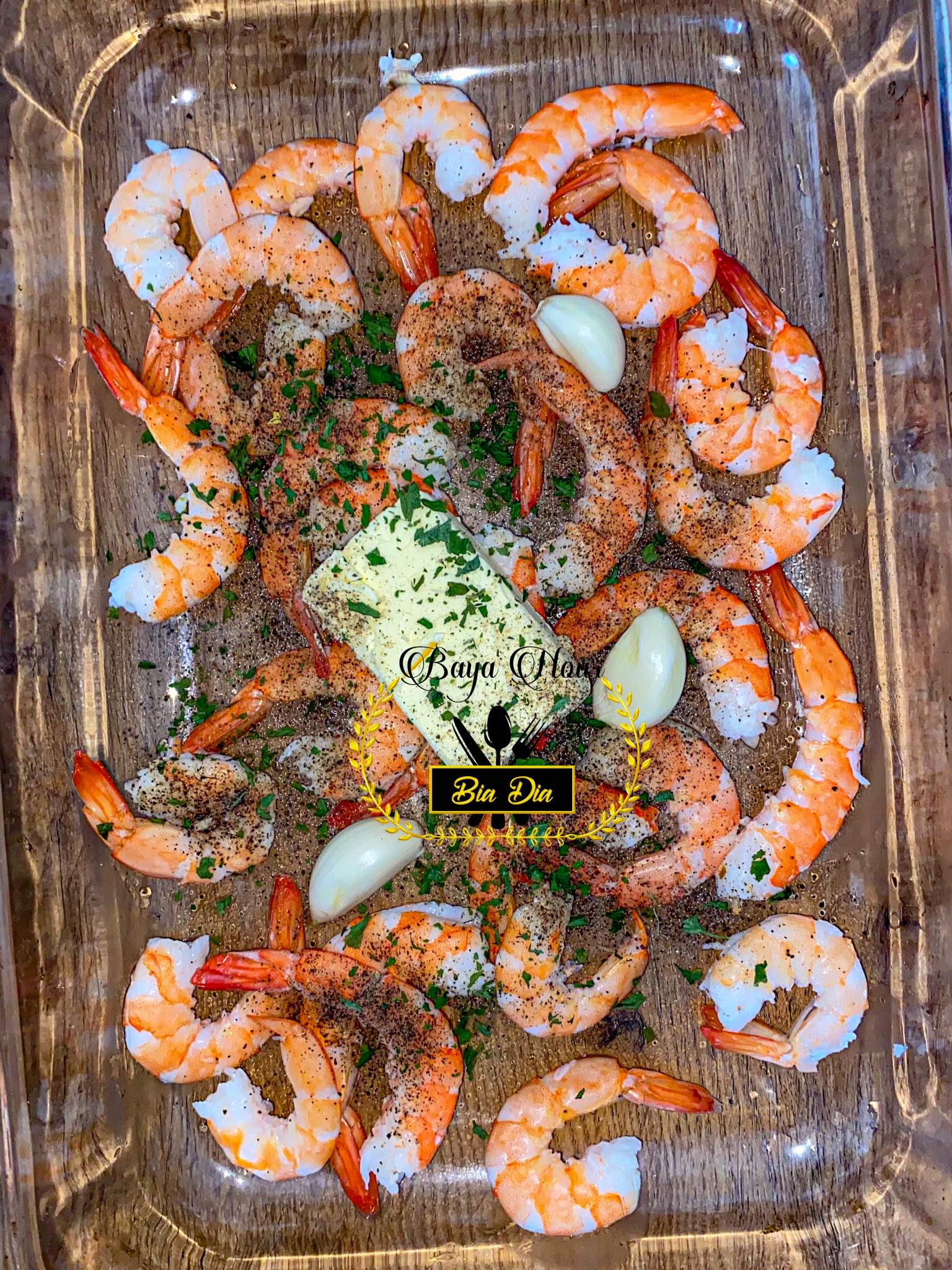 - Prenez un plat où vous allez mettre vos crevettes , poivre noir , persil , gousses d’ail et enfournez votre plat pour 5 minutes à feux moyen