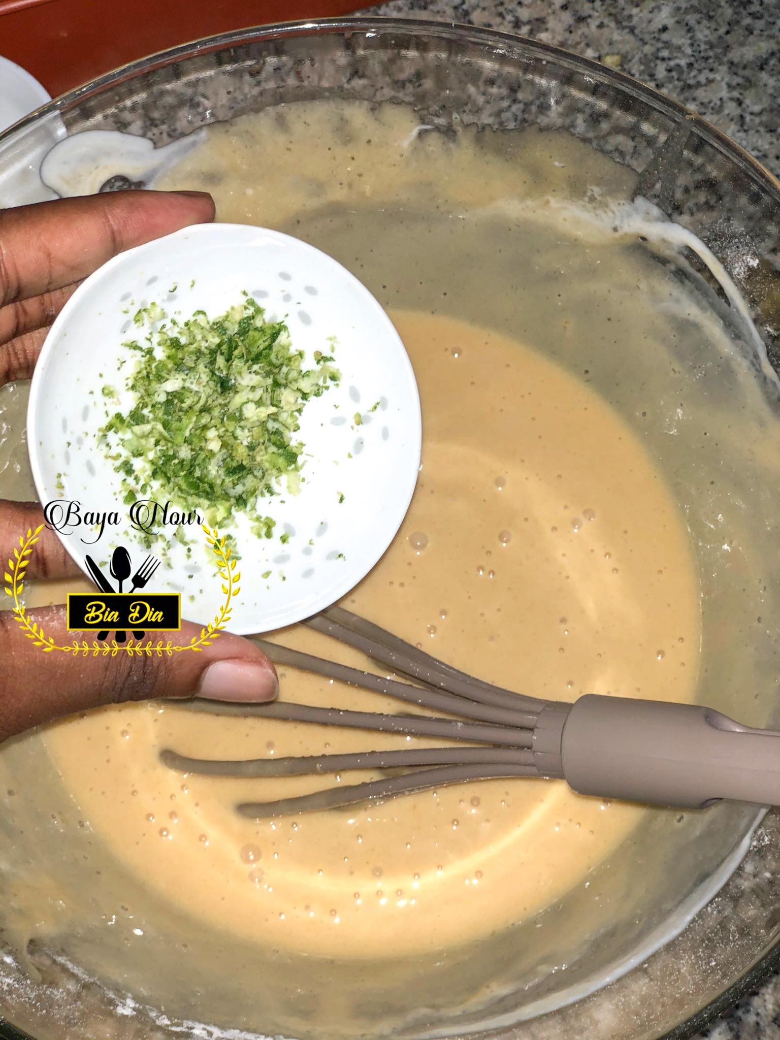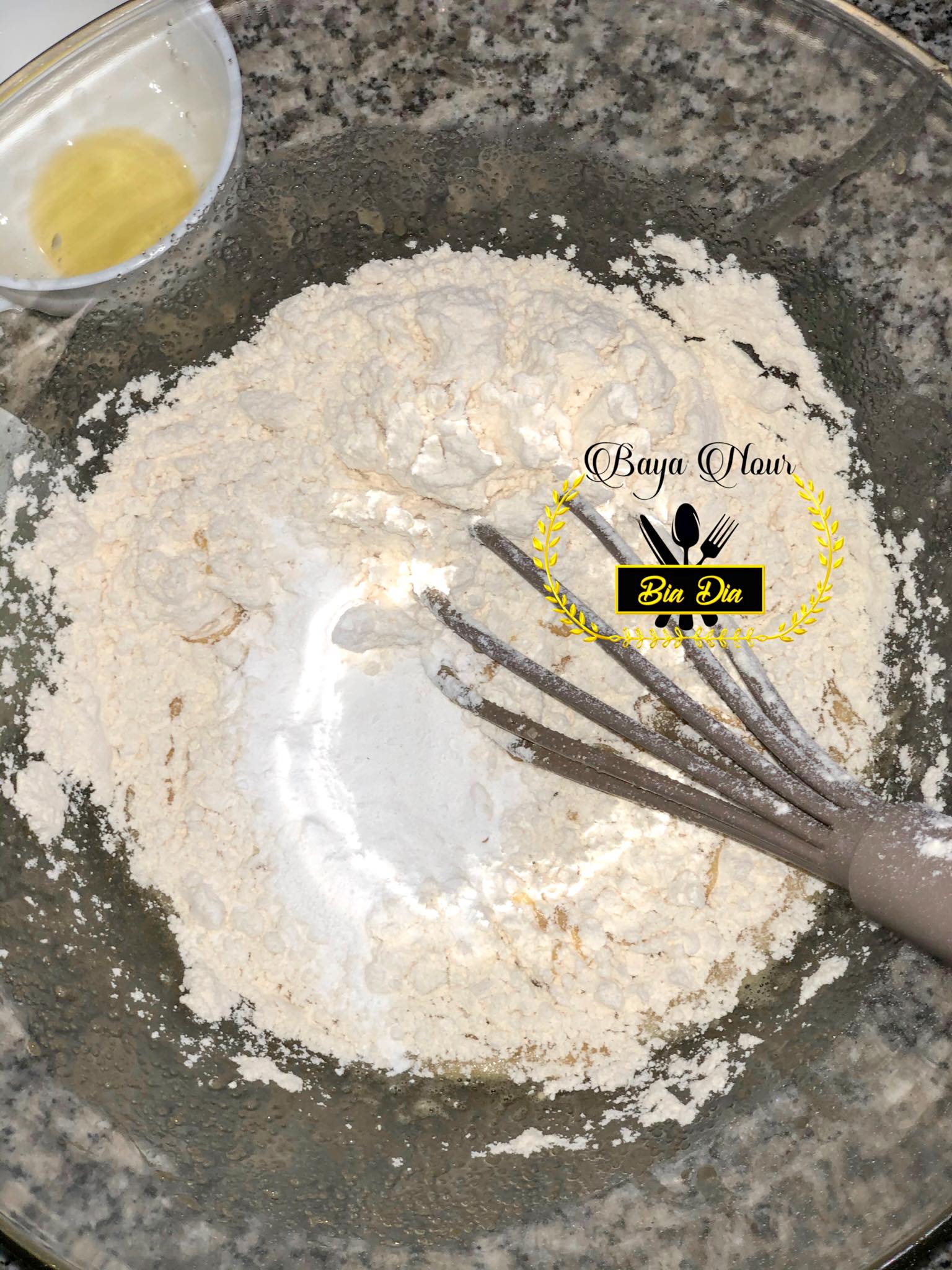 - Ajoutez la farine ; la levure et tournez de façon à ce que la pâte devienne homogène.