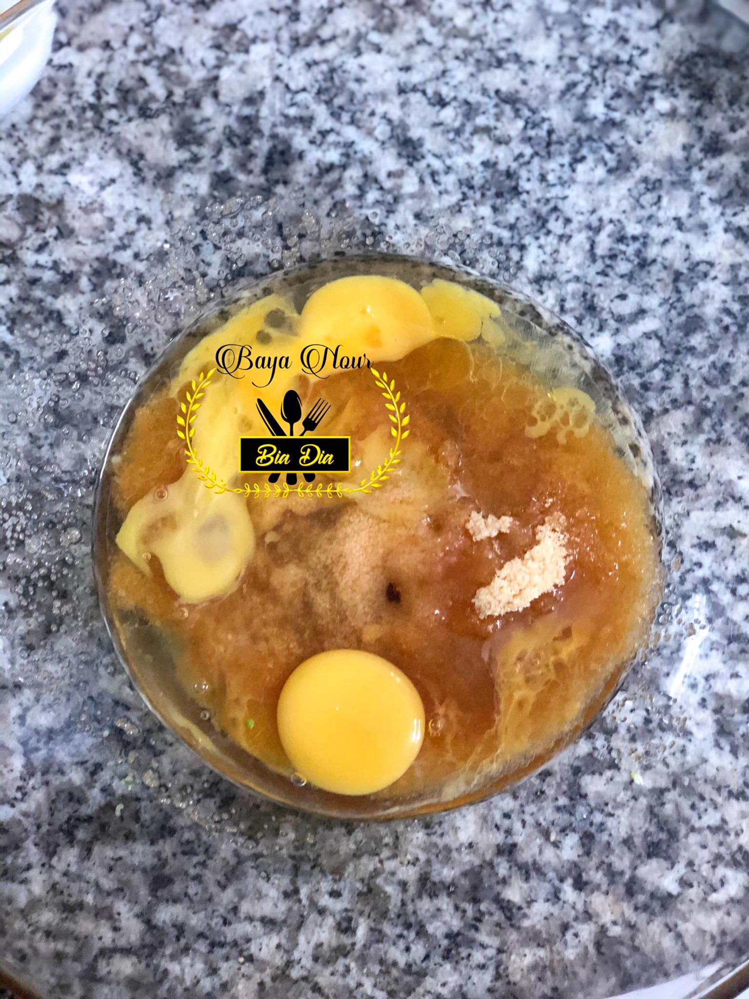- Dans un saladier ; versez l’huile ; le sucre ; les œufs et mélangez le tout à l’aide d’un fouet.