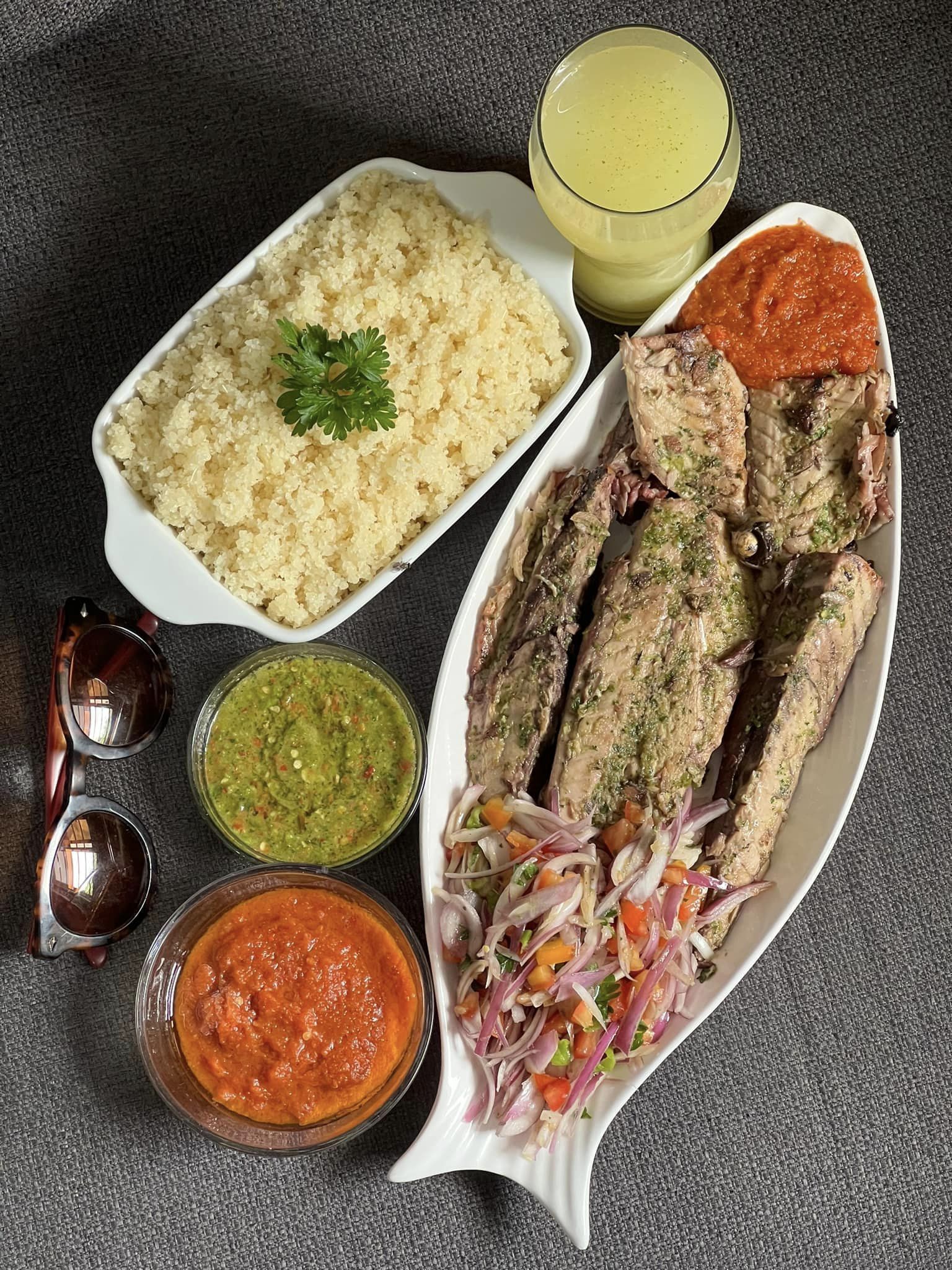 - Assaisonner le poisson avec le mélange ail persil poivron le tout piler ajouter de l’huile et du sel.