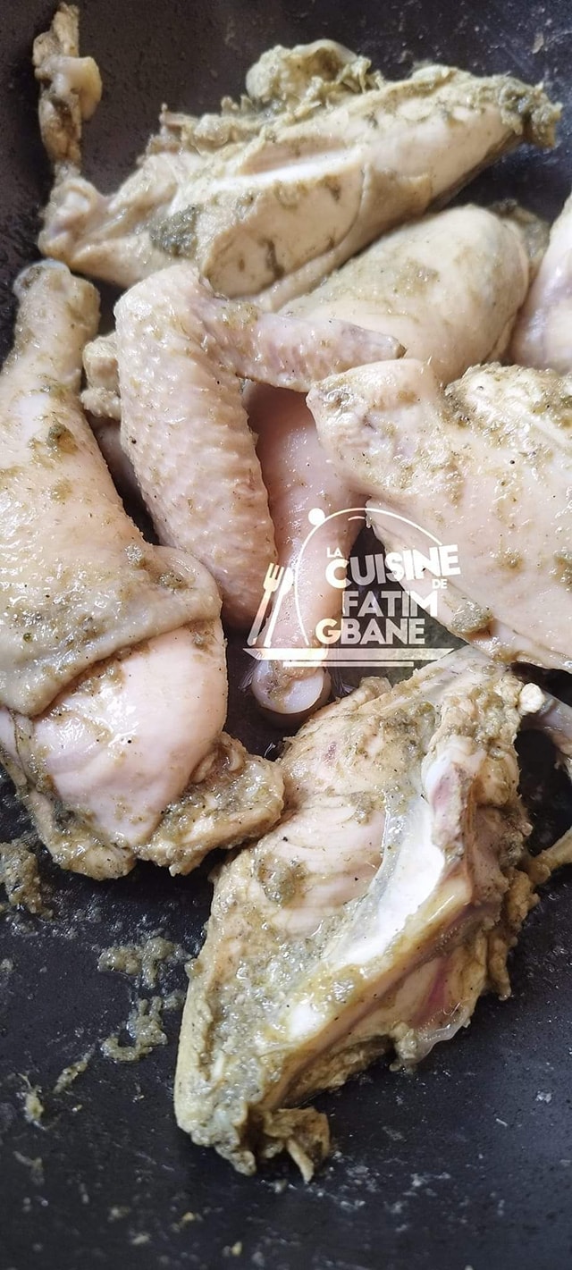 - Mariner les morceaux de poulet avec la persillade, du sel et un bouillon culinaire si vous en consommez