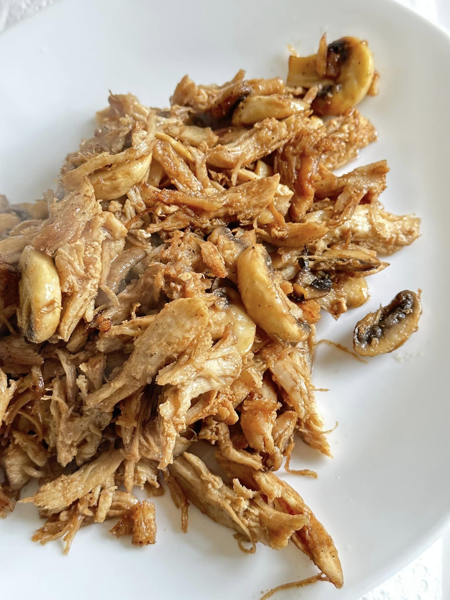 - Ajouter le poulet effiloché à la poêle et faire revenir 3 min
