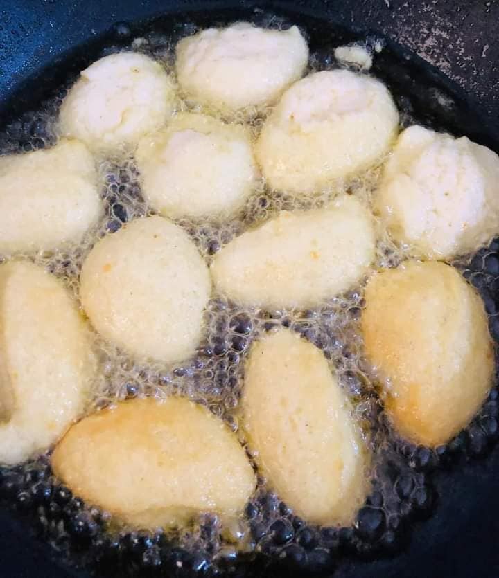 - Faire frire dans de l’huile chaude par petite portion prélevée avec une cuillère