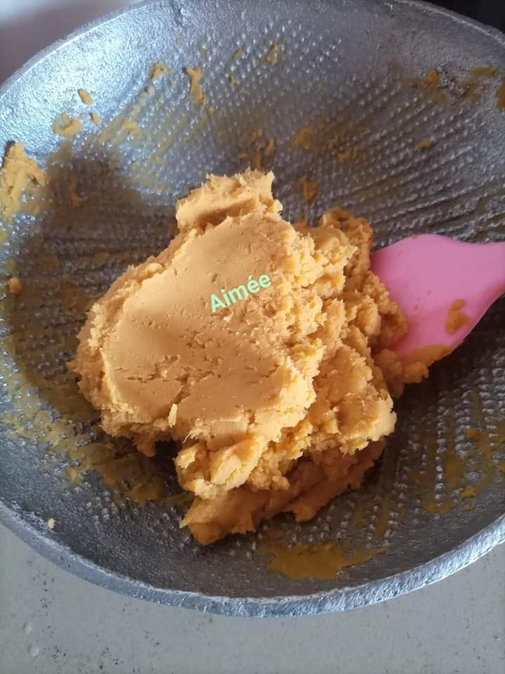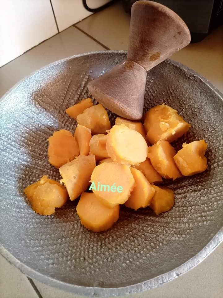 - Faire bouillir les patates (400g ici), les éplucher et les écraser pour obtenir une pâte.