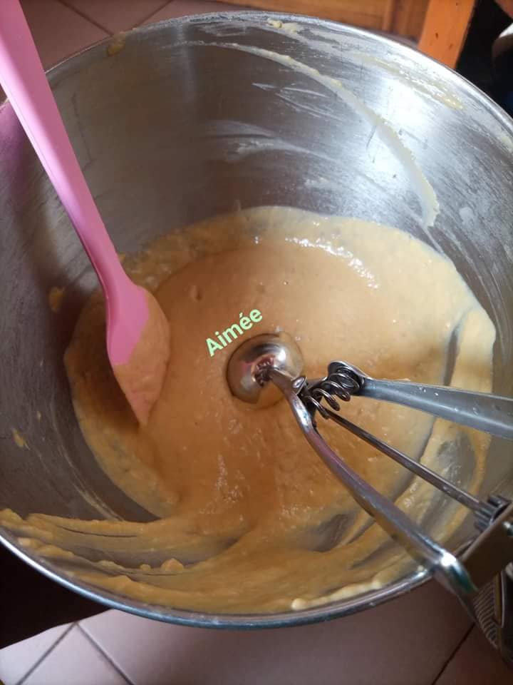 - Ajouter la levure boulangère (1cas), du sucre (2cas mais facultatif si la patate est très sucrée et que le goût vous convient, pas la peine d’en rajouter), une pincée de sel.
