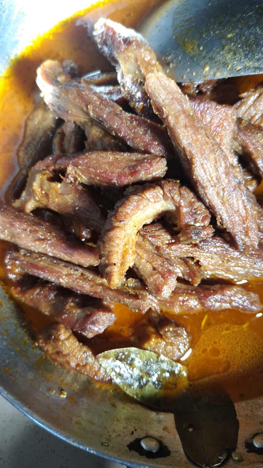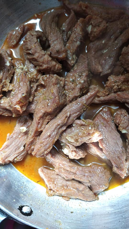 Surtout ne pas noyer la viande avec L’eau pour ne pas diluer l’assaisonnement jusqu’au ce que la viande cuise à fond