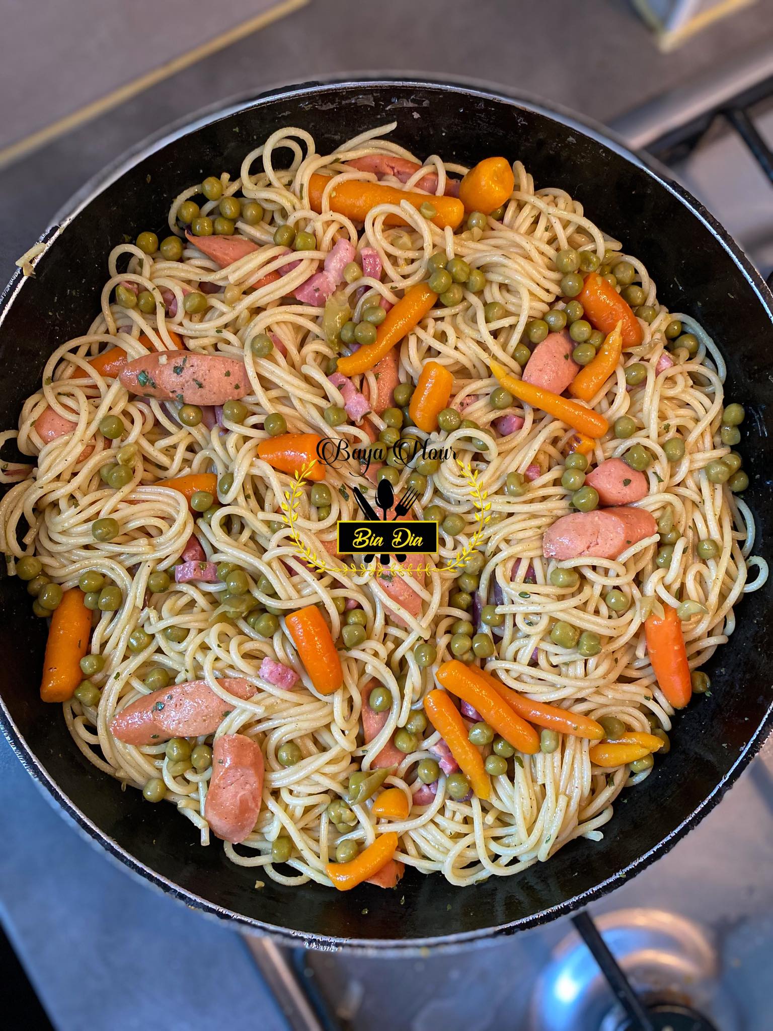 Spaghetti saucisses lardons petits pois : recette | Cuisine de Chez Nous