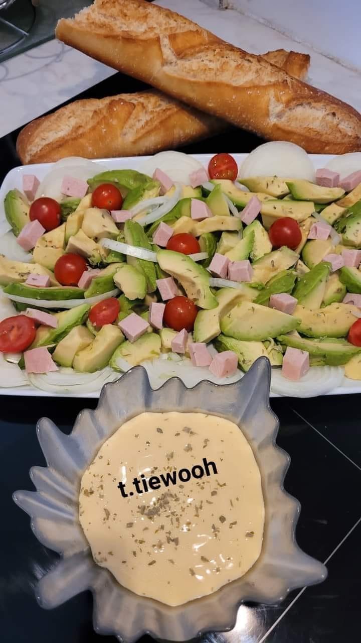 - Pour ma petite sauce, un peu de mayonnaise, un peu d’eau, poivre, sel, persil haché et pointe de sucre.