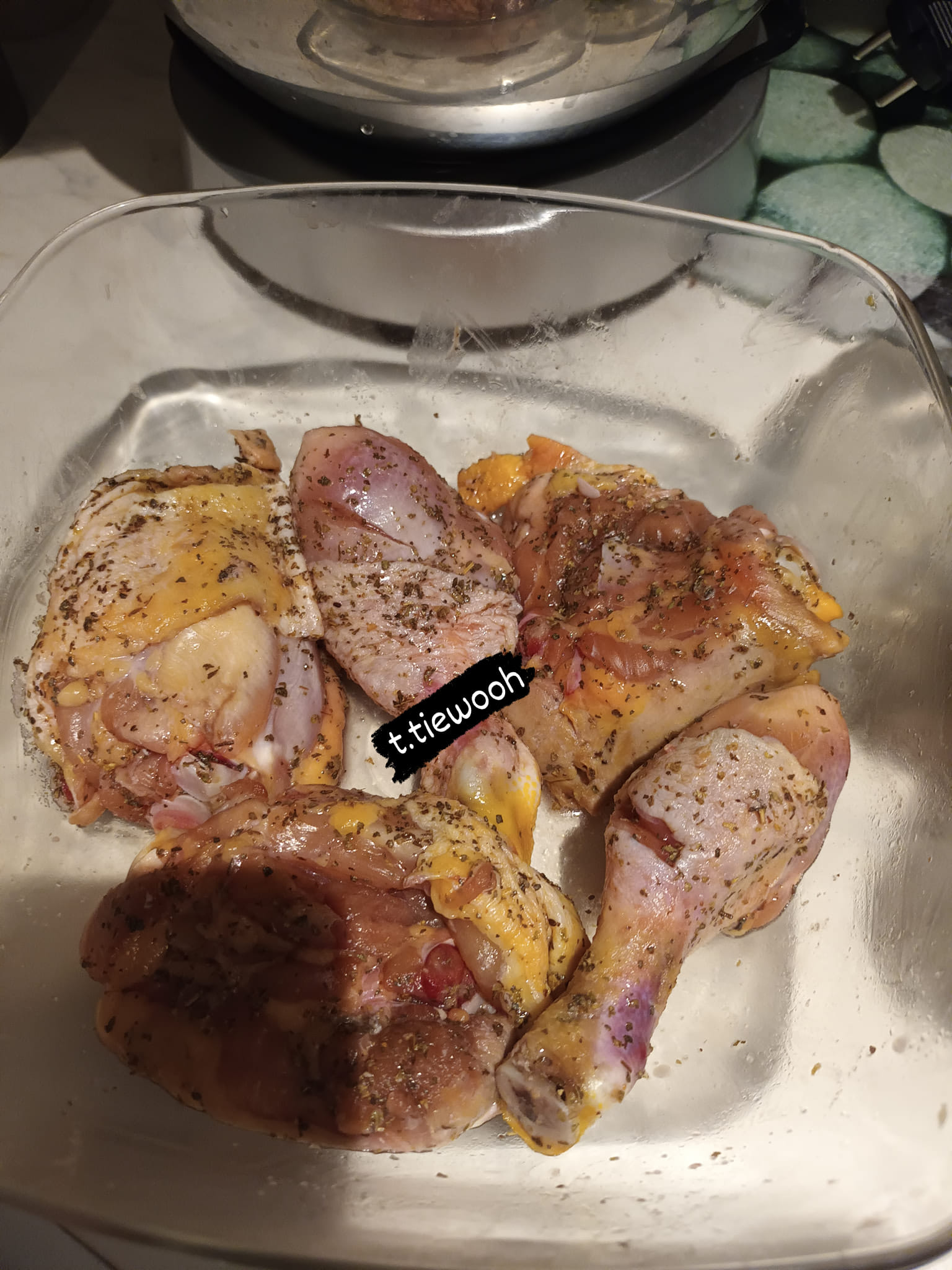 - Nettoyer votre poulet, rincer avec l’eau citronnée. Entailler les morceaux et saler.