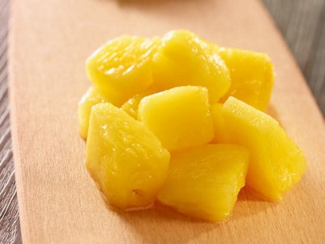 - Ajouter un morceau d’ananas bien sucré dans la sauce laisser mijoter pendant quelques minutes ,le sucre contenu dans l’ananas va adoucir la sauce
