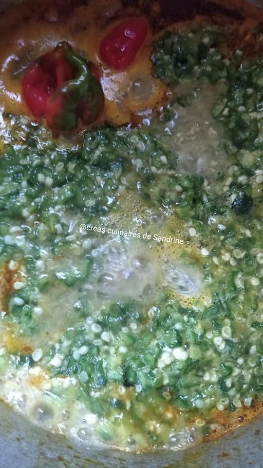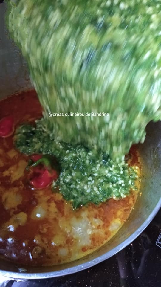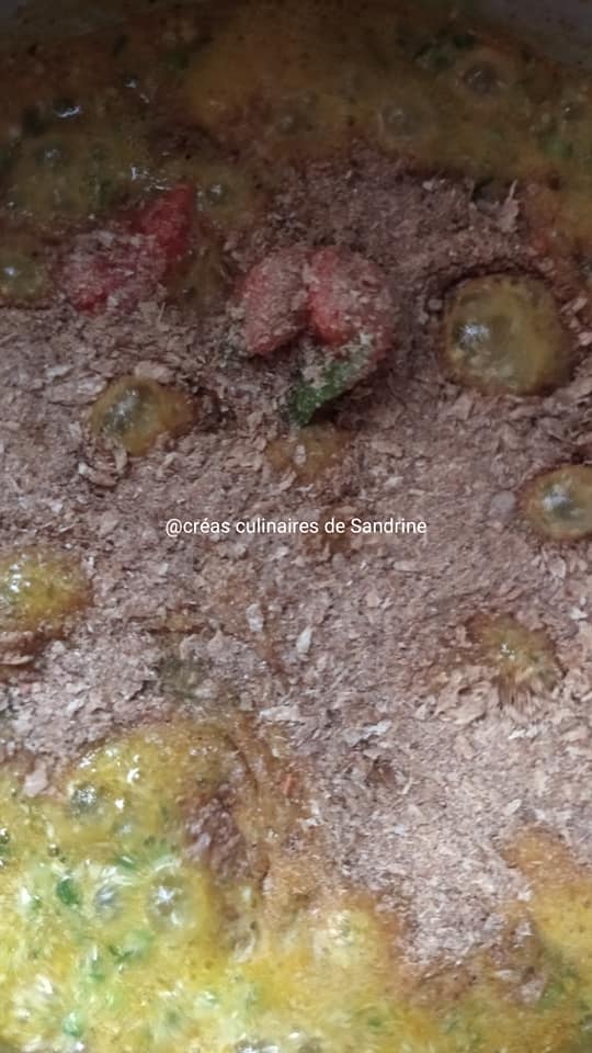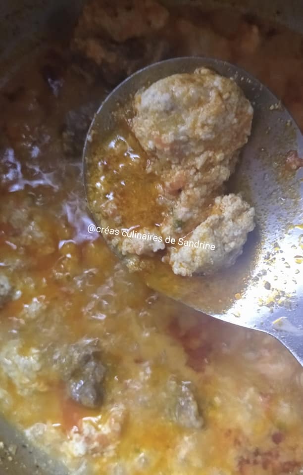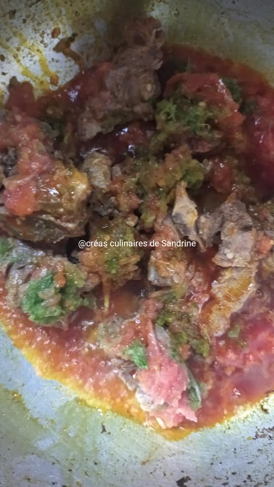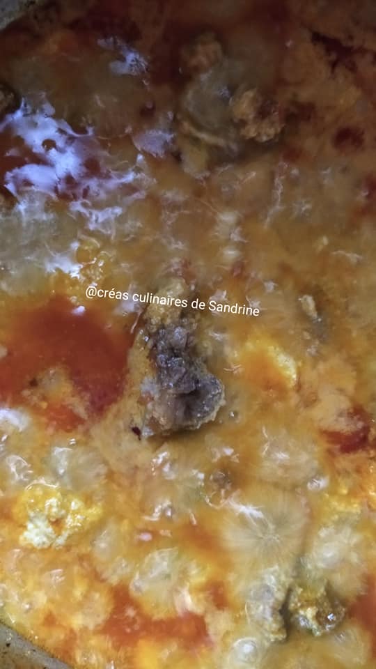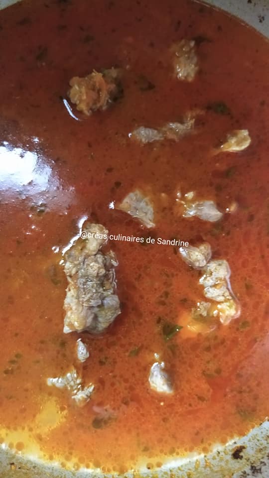 Dans une marmite mettre l’huile (j’ai choisi rouge pour son goût , vous pouvez le faire avec l’huile de votre choix) dès que l’huile a diédie ajouter la purée de tomates et des autres ingrédients ,la viande et frire le tout pendant 4 minutes à feu moyen