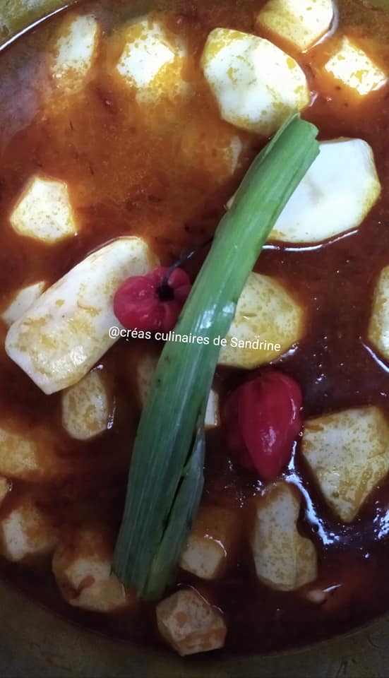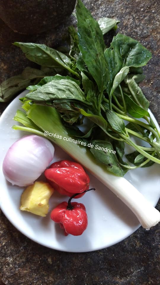 Ensuite mettre de l’eau le piment ( la tige de poireau je l’ai mis par choix donc c’est facultatif ) mettre la feuille d’odjom pour remplacer