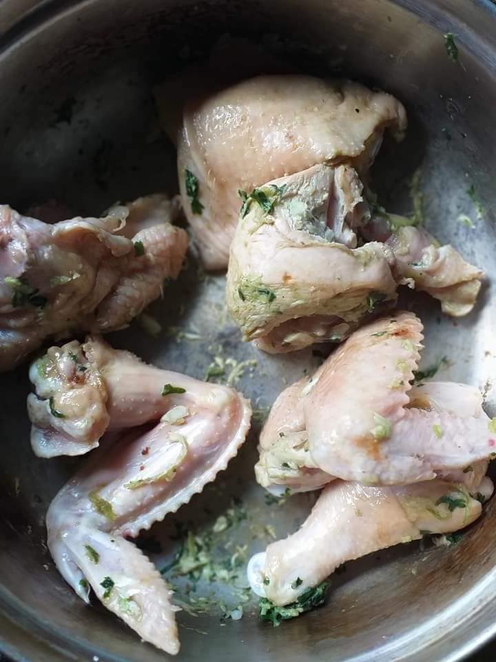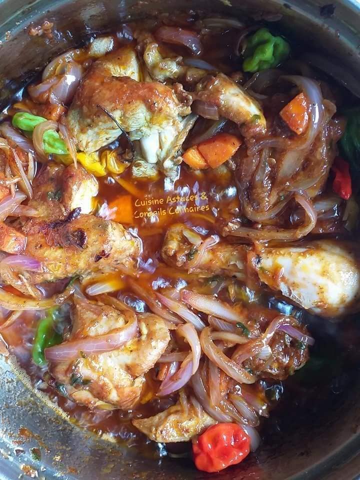 Puis rajoutez les morceaux de poulet, un peu d’eau et rectifier l’assaisonnement et laisser mijoter à feu doux.
