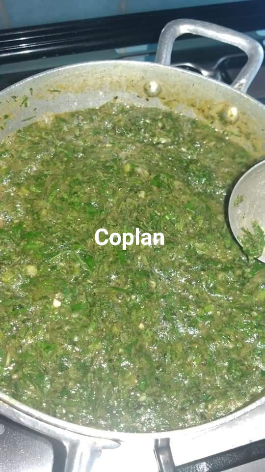 - Entre temps laver les feuilles de keleng keleng (feuilles gluantes) les découper finement et pétrir avec un peu de sel gemme afin qu’ils glissent bien et restent verts à la cuisson.
