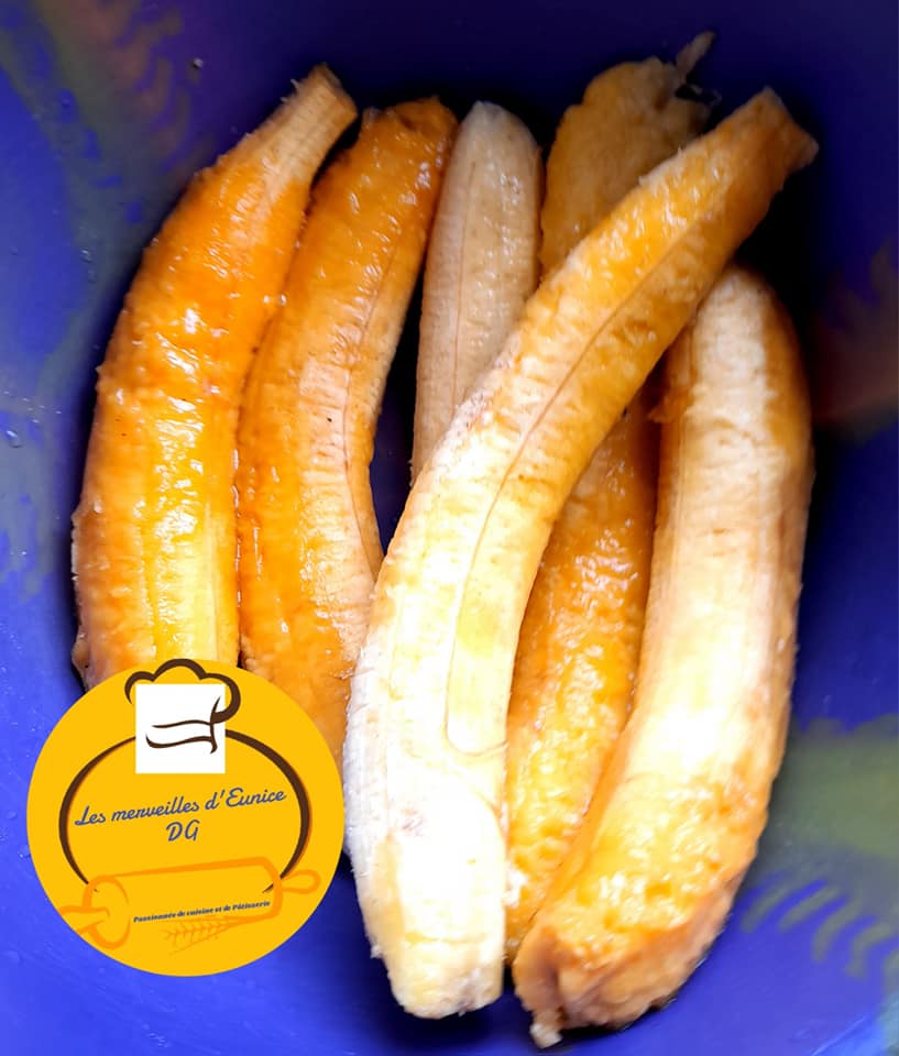 - Mettre la banane plantain, après quelques minutes, diminuer le feu à un feu moyen.