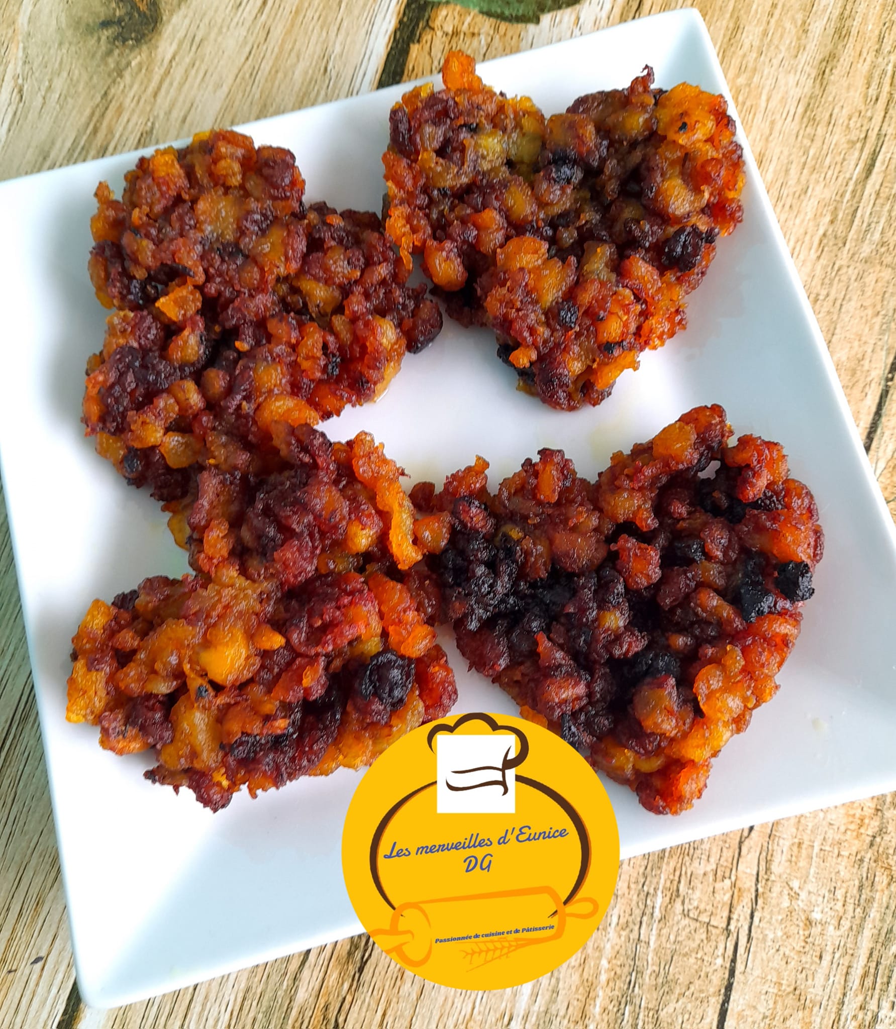 - Une fois cuit, mettre sur du papier absorbant. Vous pouvez donner les formes que vous souhaitez à l’aide d’emportes pièces.