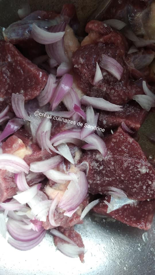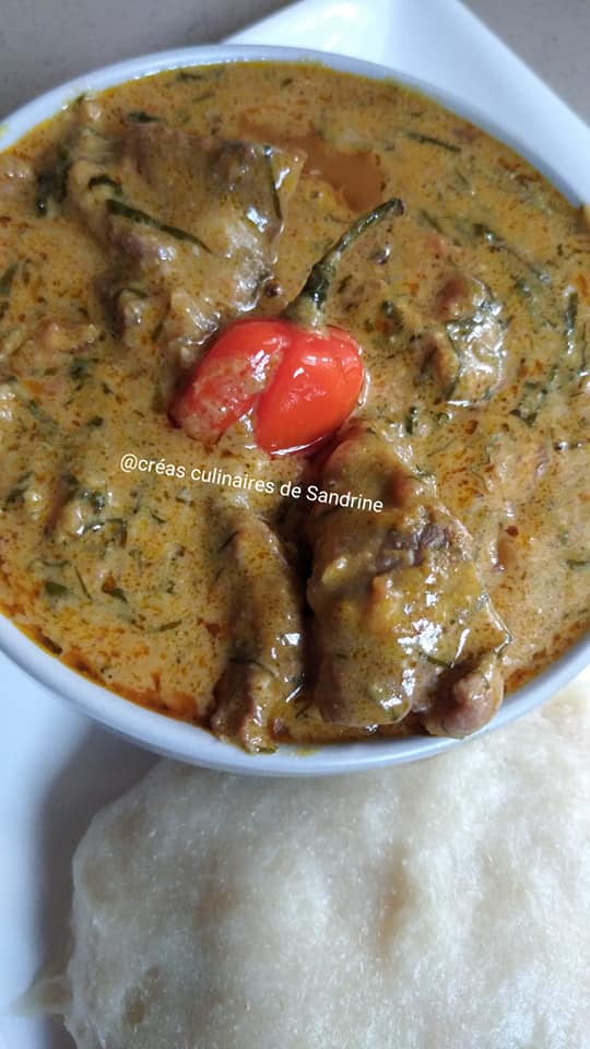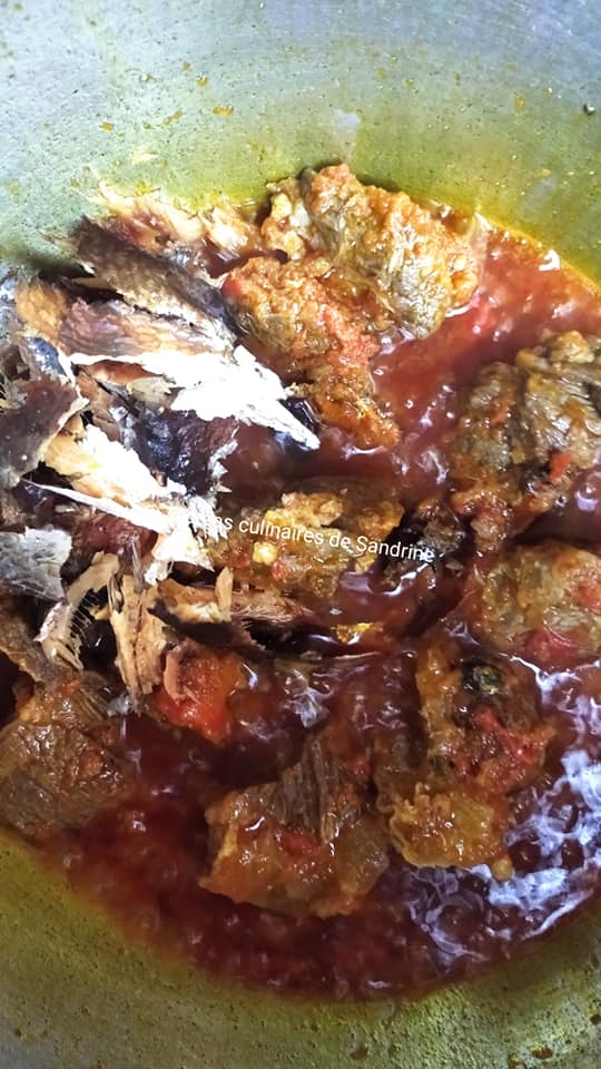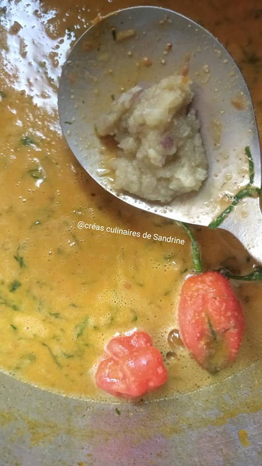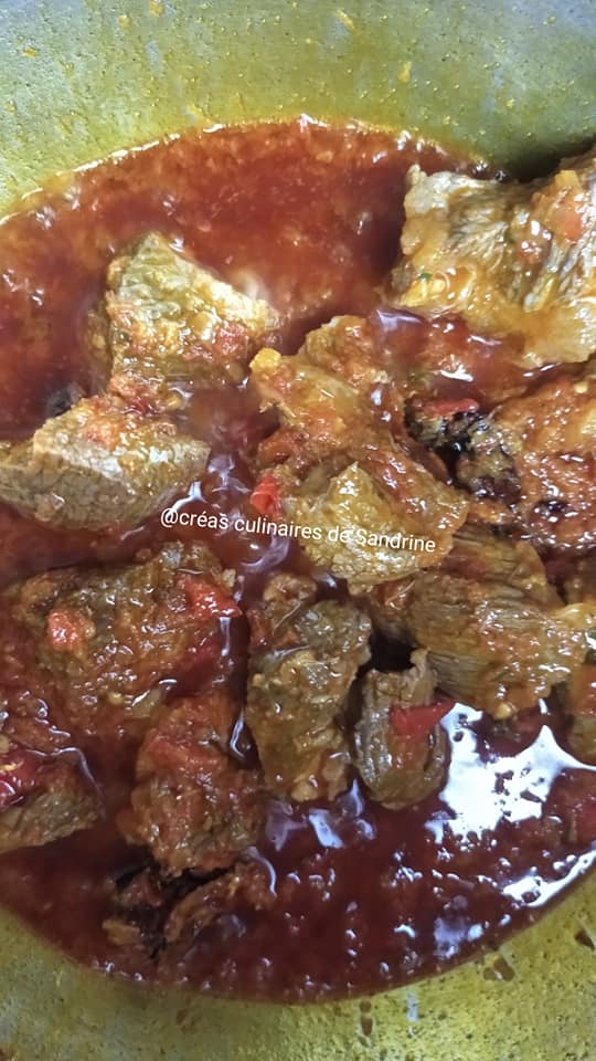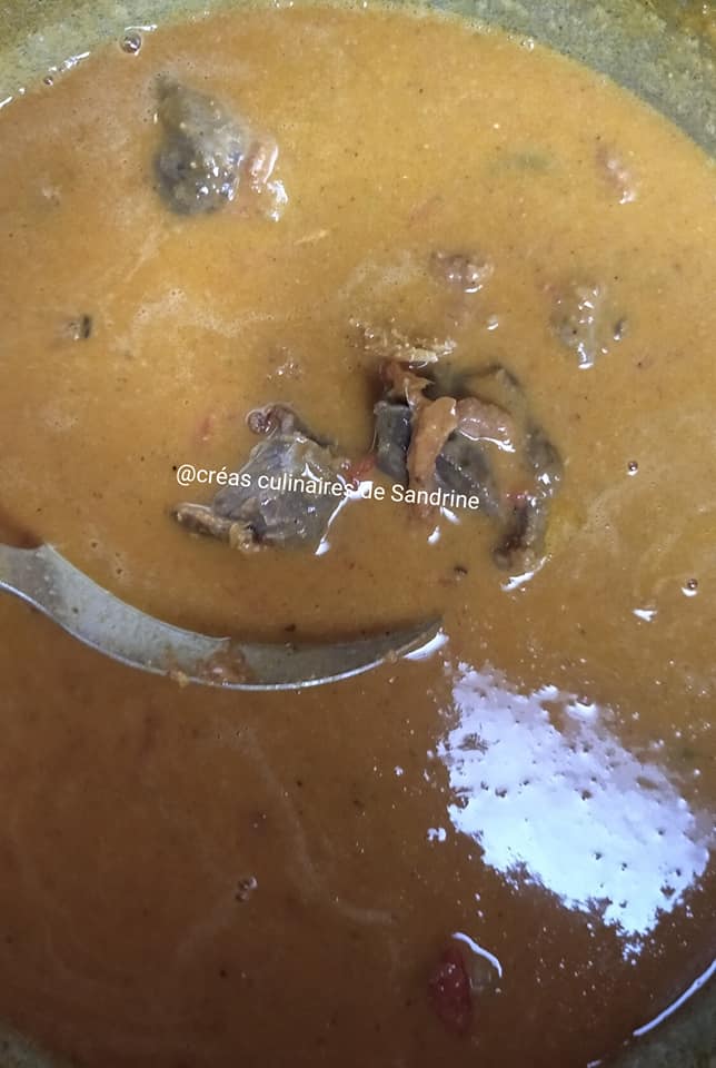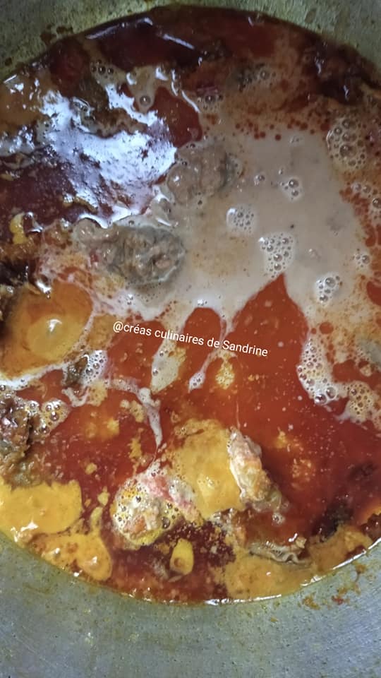 Ajouter le bouillon qui a servi à cuire la viande  .Laisser l’arachide bien cuire