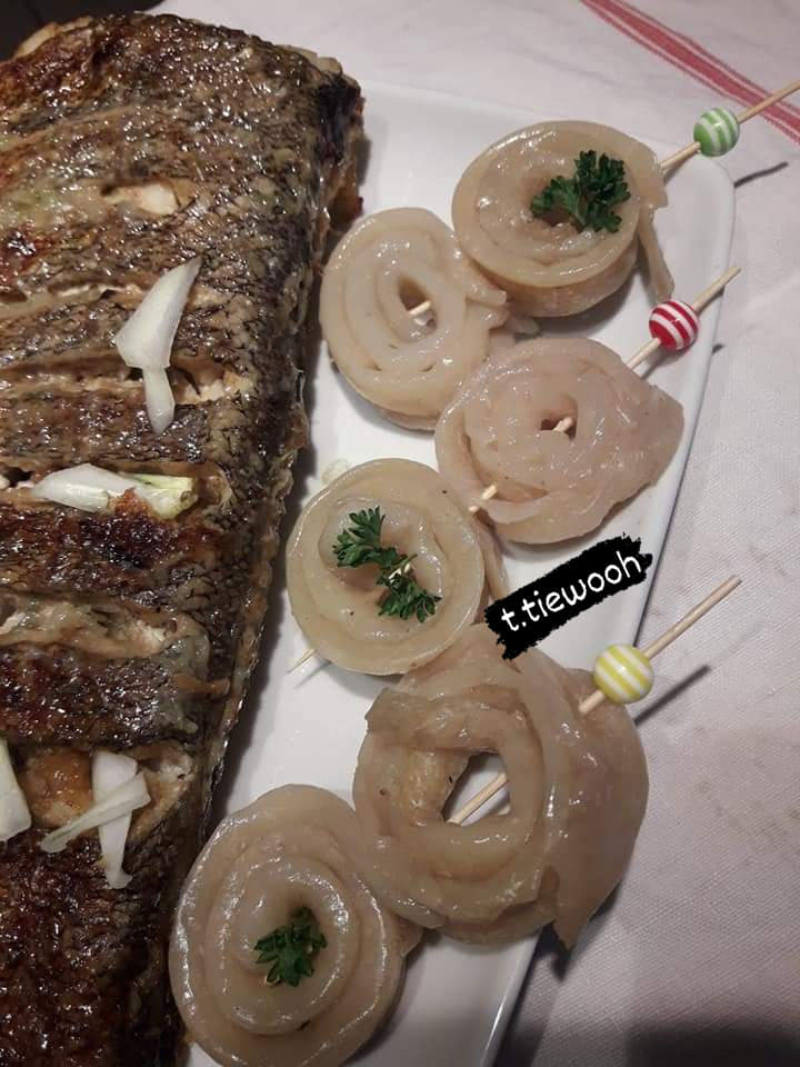 - Griller les épices et les écraser avec ail et blanc de poireau ajouter un peu d’huile et cube bien mélanger et y faire mariner le poisson même pour 2h.