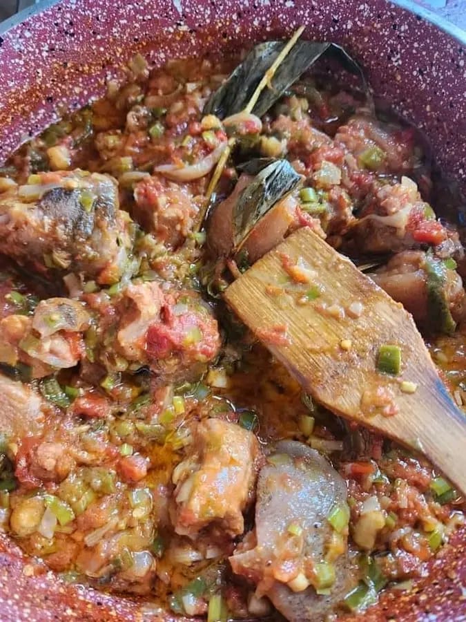 - Dans une marmite versez-y 2 cuillères à soupe d’huile et faites frire un demi oignon ensuite faites dorer le rôti sur chaque face, puis y ajouter la tomate et le poiro hachée