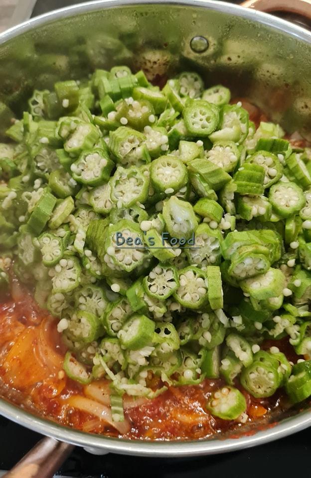 - Ajoutez les gombos découpés à la casserole.