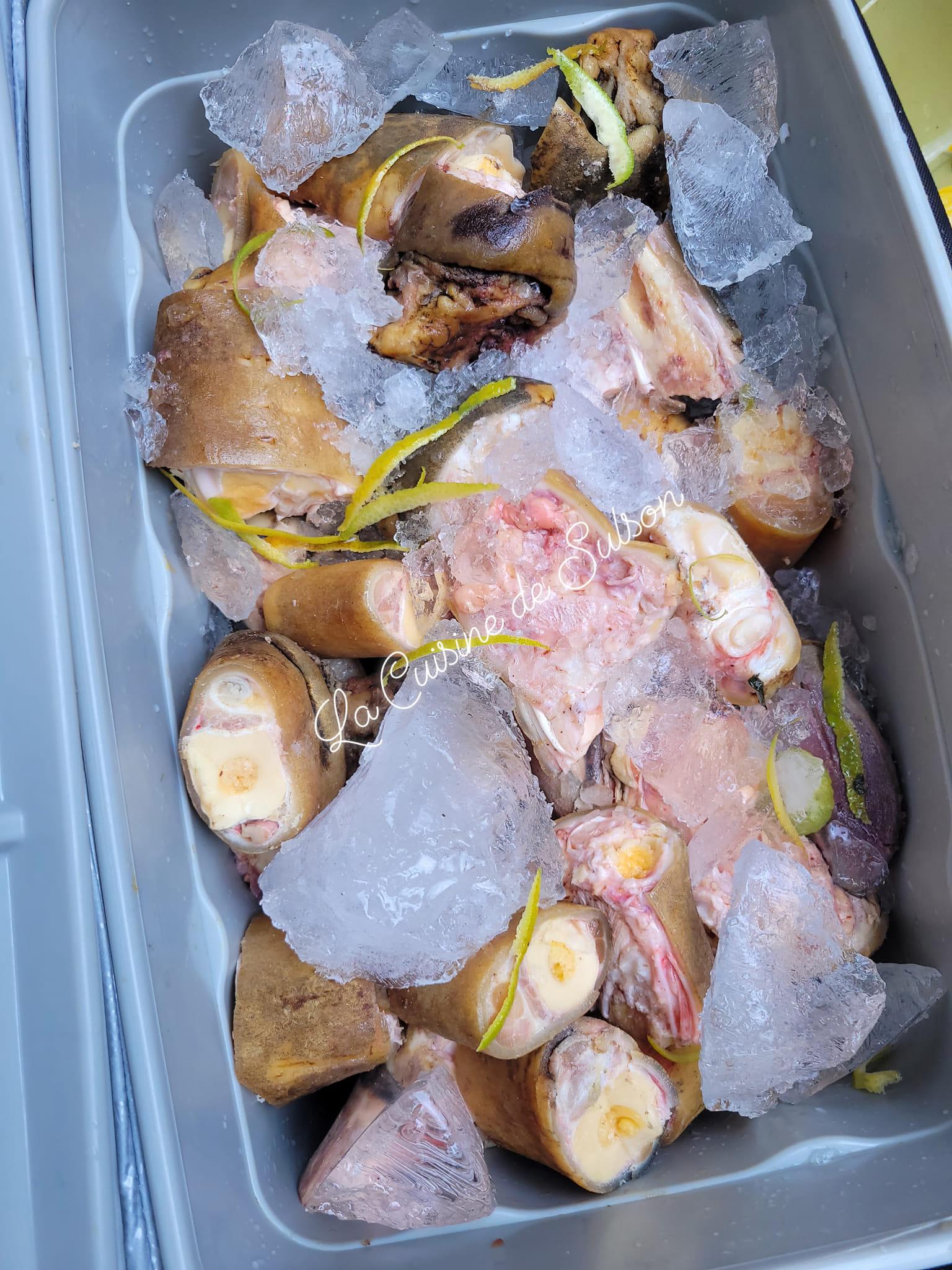 - Dans une glacière ou un seau bien propre, disposez votre poisson, viande ou poulet.