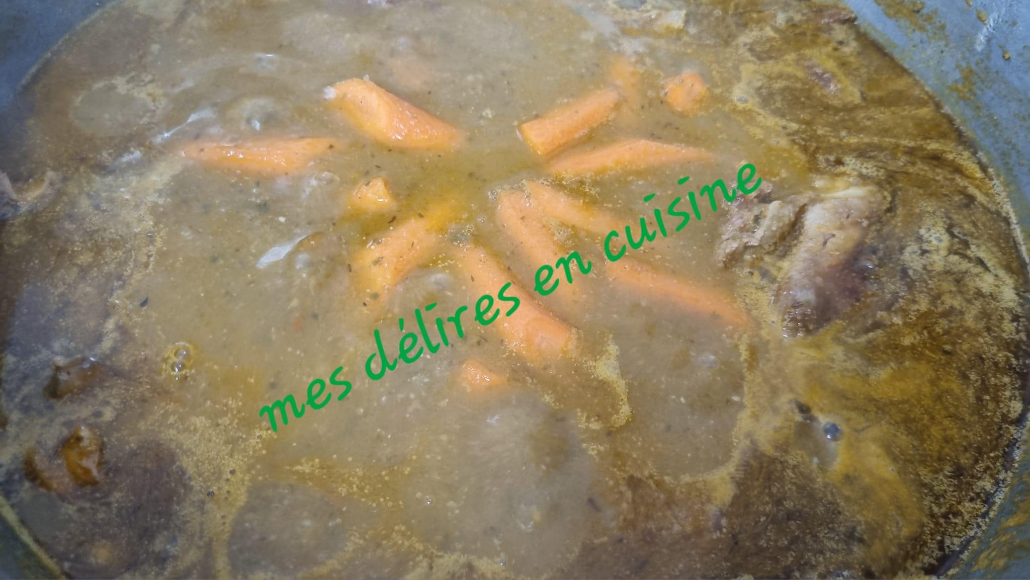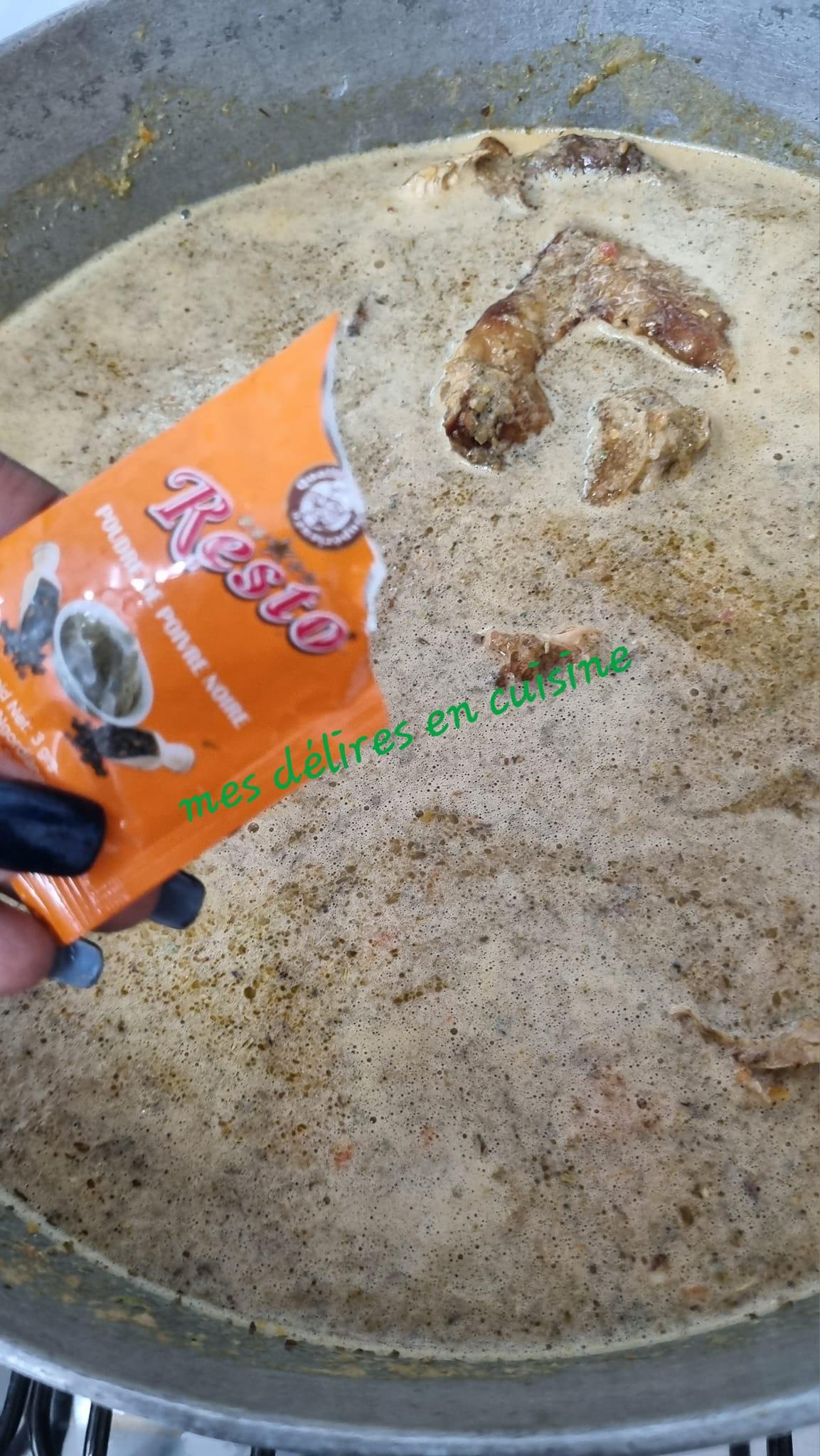 - Versez cette préparation sur le poulet doré dans la marmite.