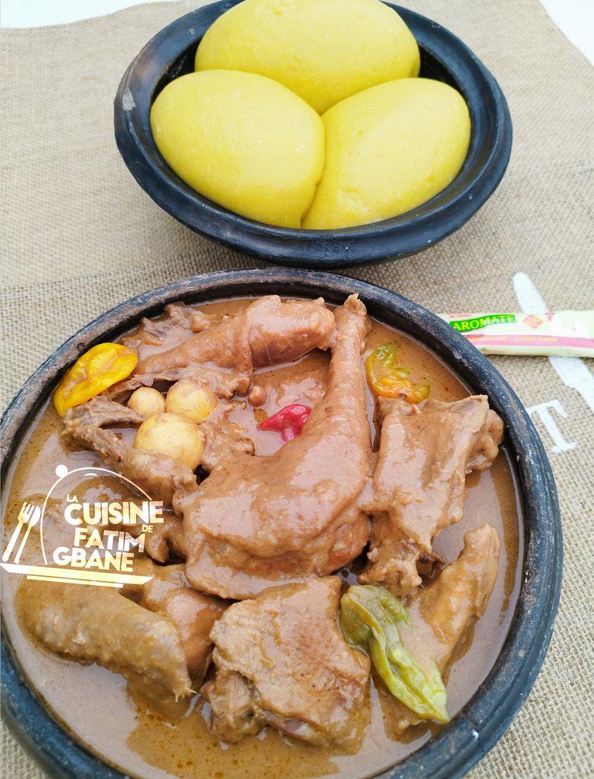 Servez le foutou banane accompagné de la sauce arachide bien chaude. Ce plat traditionnel ivoirien est parfait pour un repas convivial en famille ou entre amis.