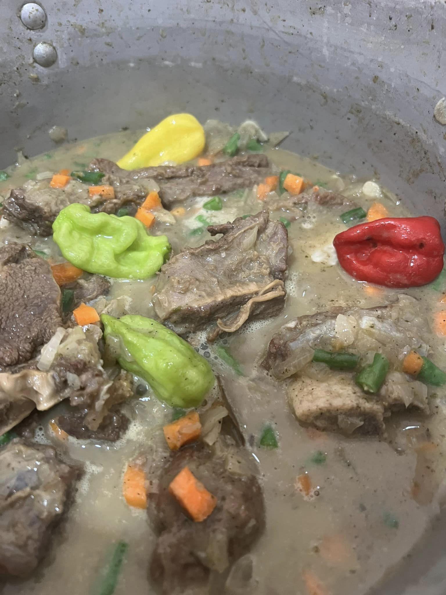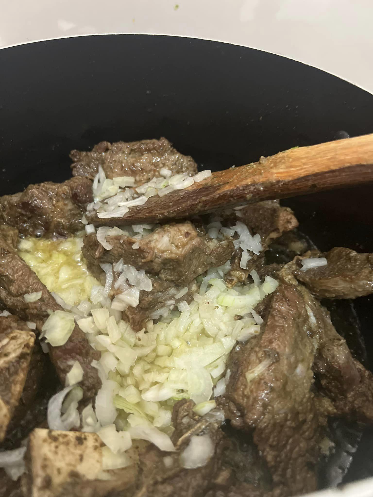 - Ajoutez 2 verres d’eau et une feuille de laurier, puis couvrez et laissez cuire jusqu’à ce que la viande soit tendre.