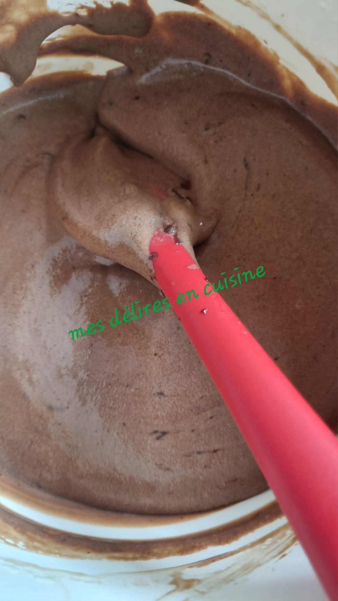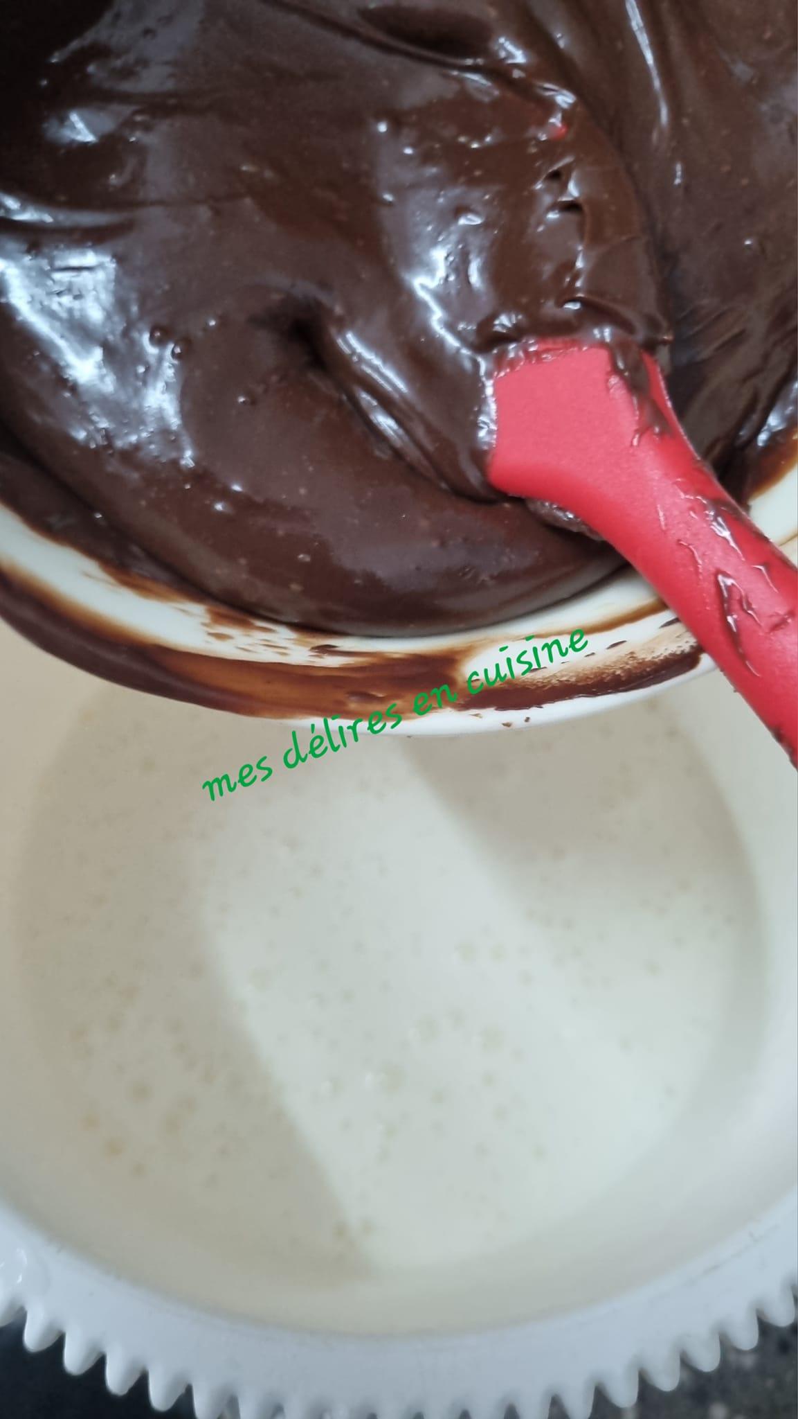 - Incorporez délicatement le mélange de chocolat refroidi à la chantilly en effectuant des mouvements doux pour conserver l’aération.