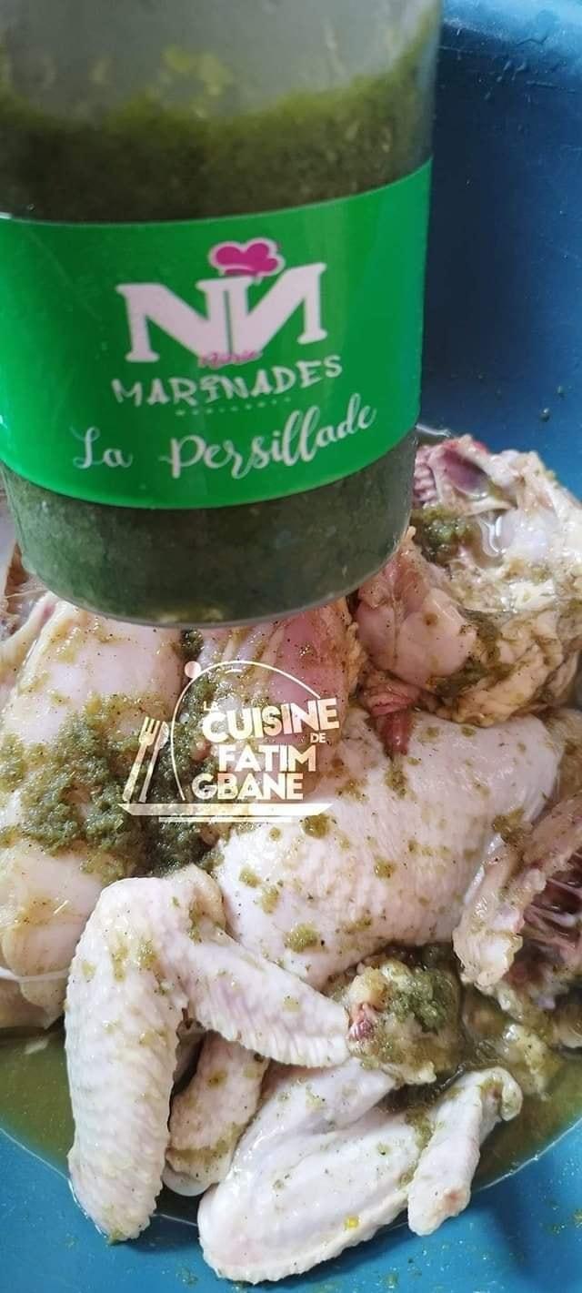 - Enduisez les morceaux de poulet avec la persillade, du sel et un bouillon culinaire si désiré.