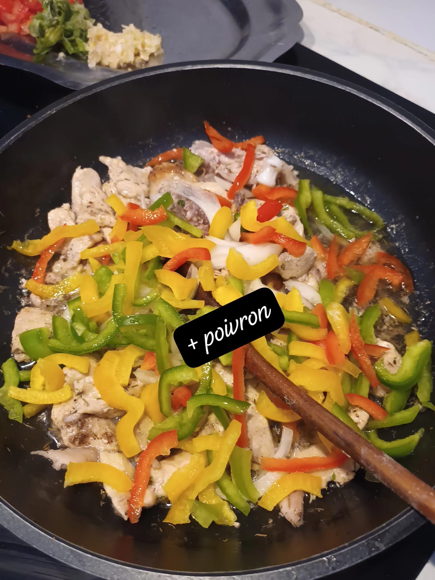 - Ajoutez les dés de poivron et de tomate, puis laissez cuire pendant environ 5 minutes jusqu’à ce que les légumes soient tendres.