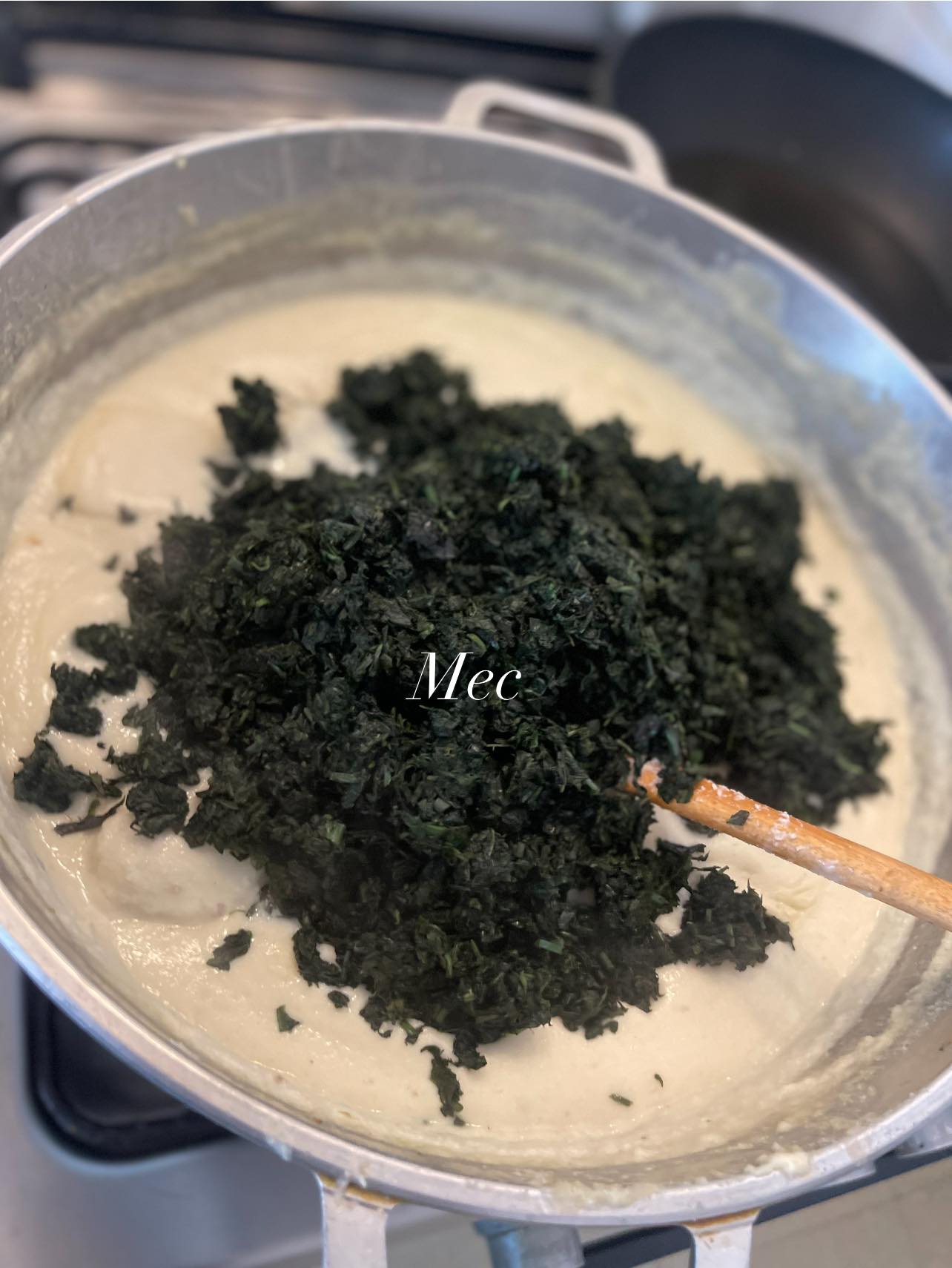 - Servez le ndolè chaud accompagné des boules de couscous de maïs.