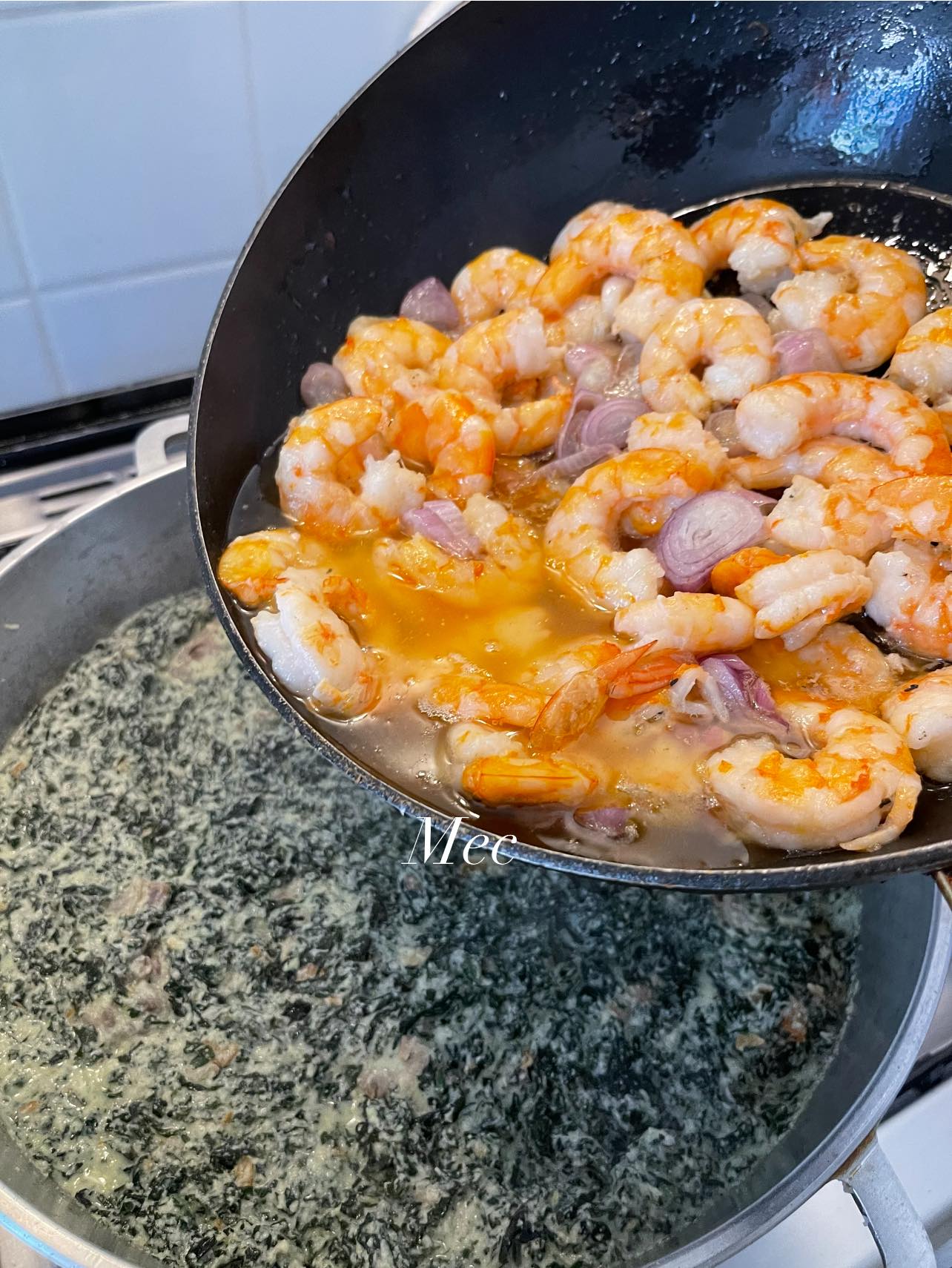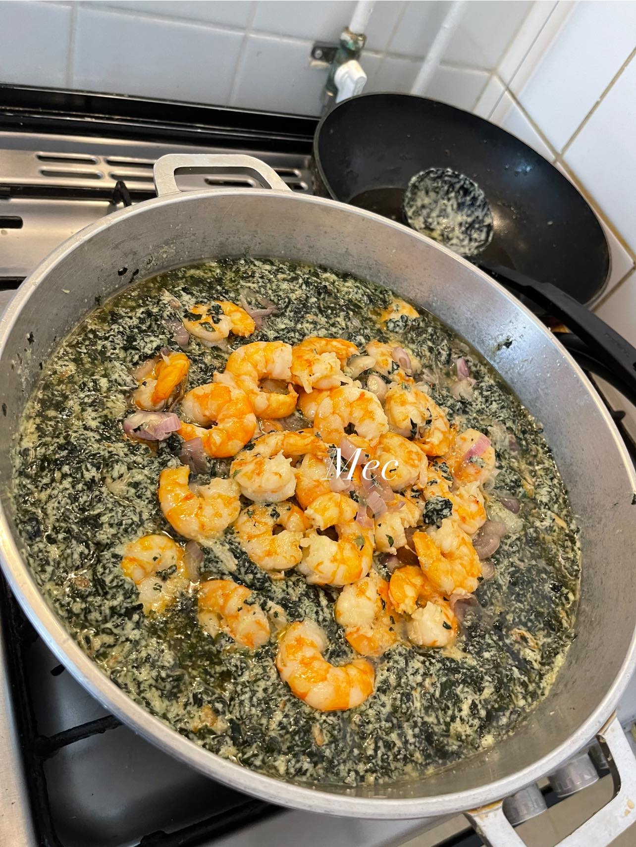 - Ajoutez les crevettes sautées à la sauce ndolè. Mélangez bien et laissez mijoter pendant 5 minutes pour que les saveurs se mélangent harmonieusement.