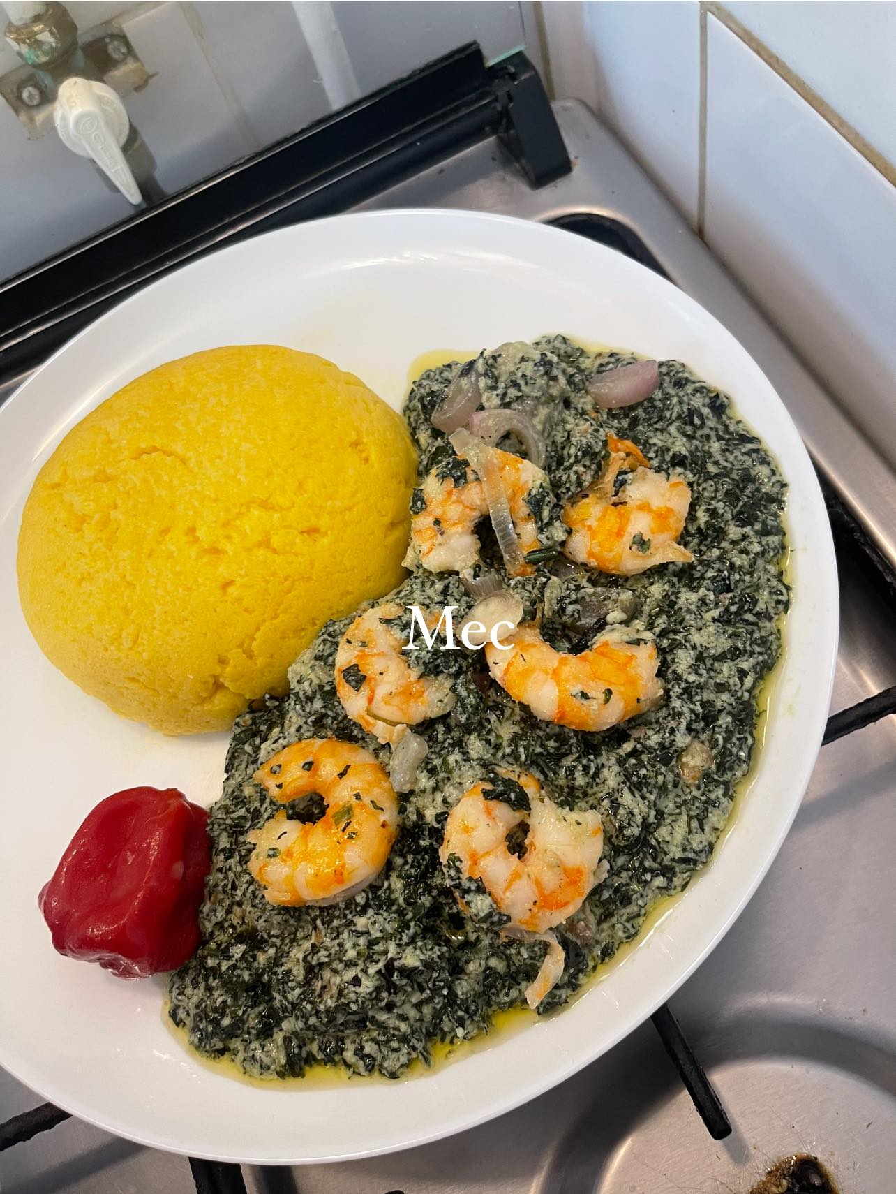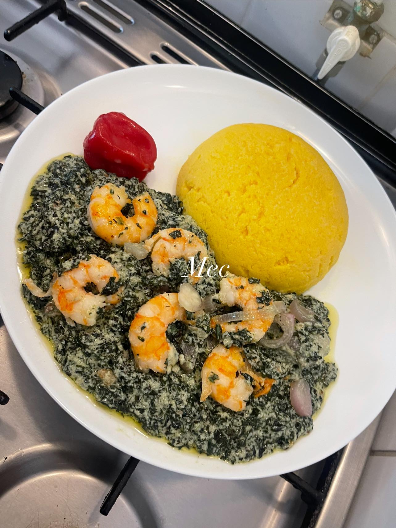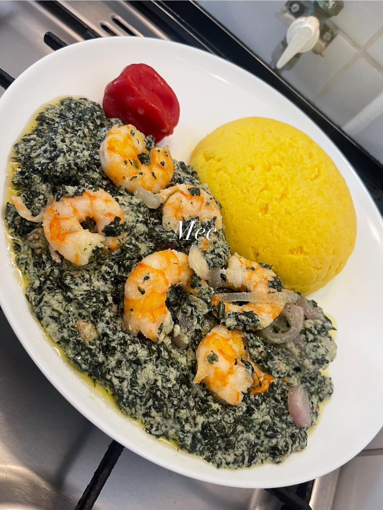 Savourez l’authenticité du Cameroun avec ce délicieux ndolè accompagné de sa boule de couscous de maïs. Ce plat emblématique allie la richesse des arachides aux saveurs des crevettes et de la viande, le tout sublimé par les feuilles de ndolè. Un véritable festin pour les papilles !