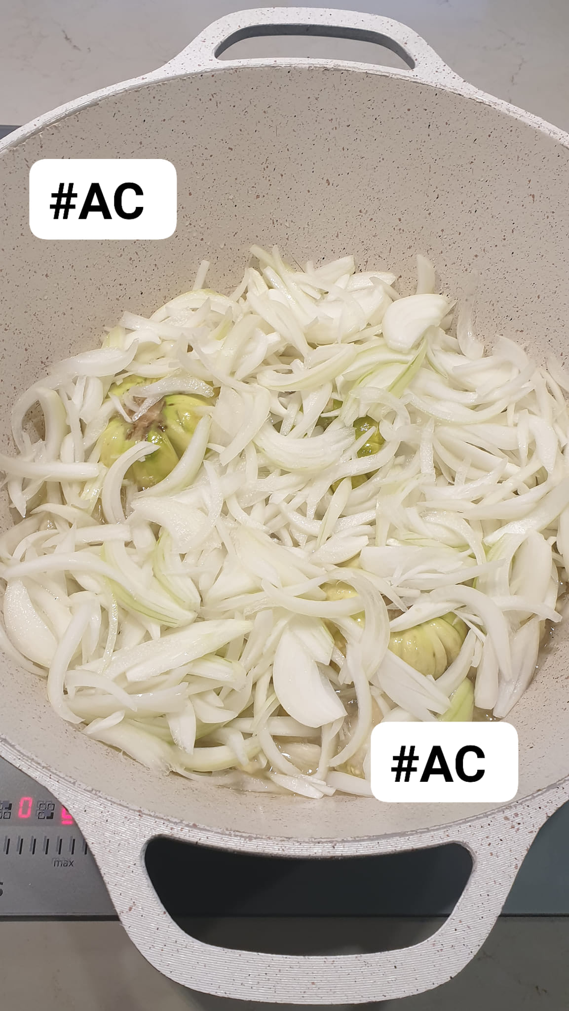 - Incorporez les oignons coupés en dés aux aubergines.