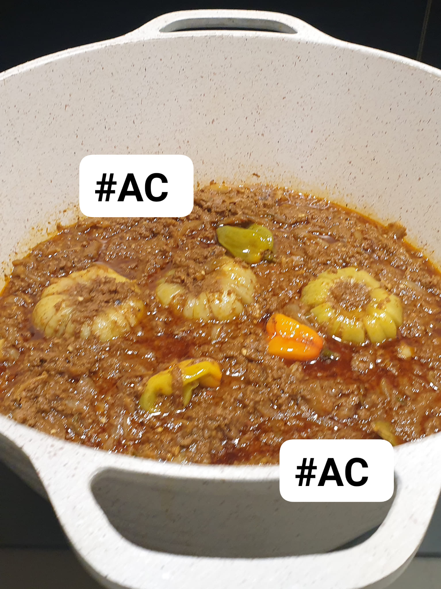4⃣ Incorporation des crevettes et des épices :
