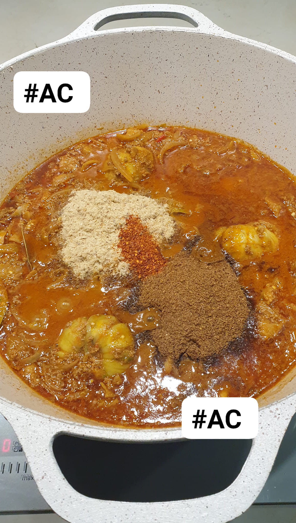 - Ajoutez les poudres de poisson, de soumbara et de piment.