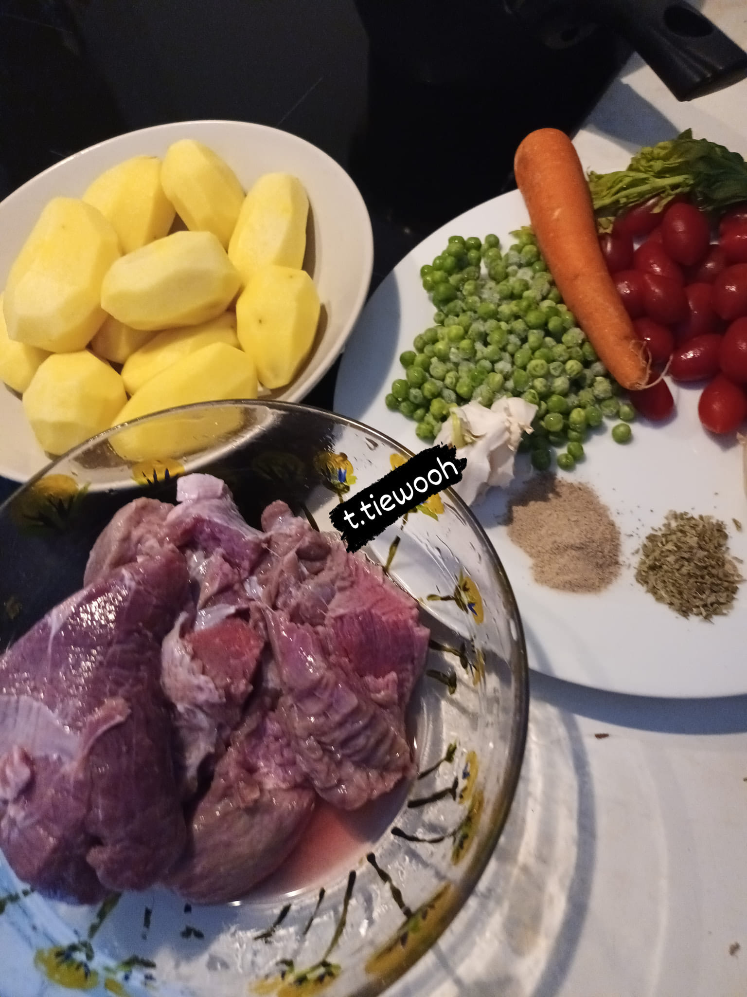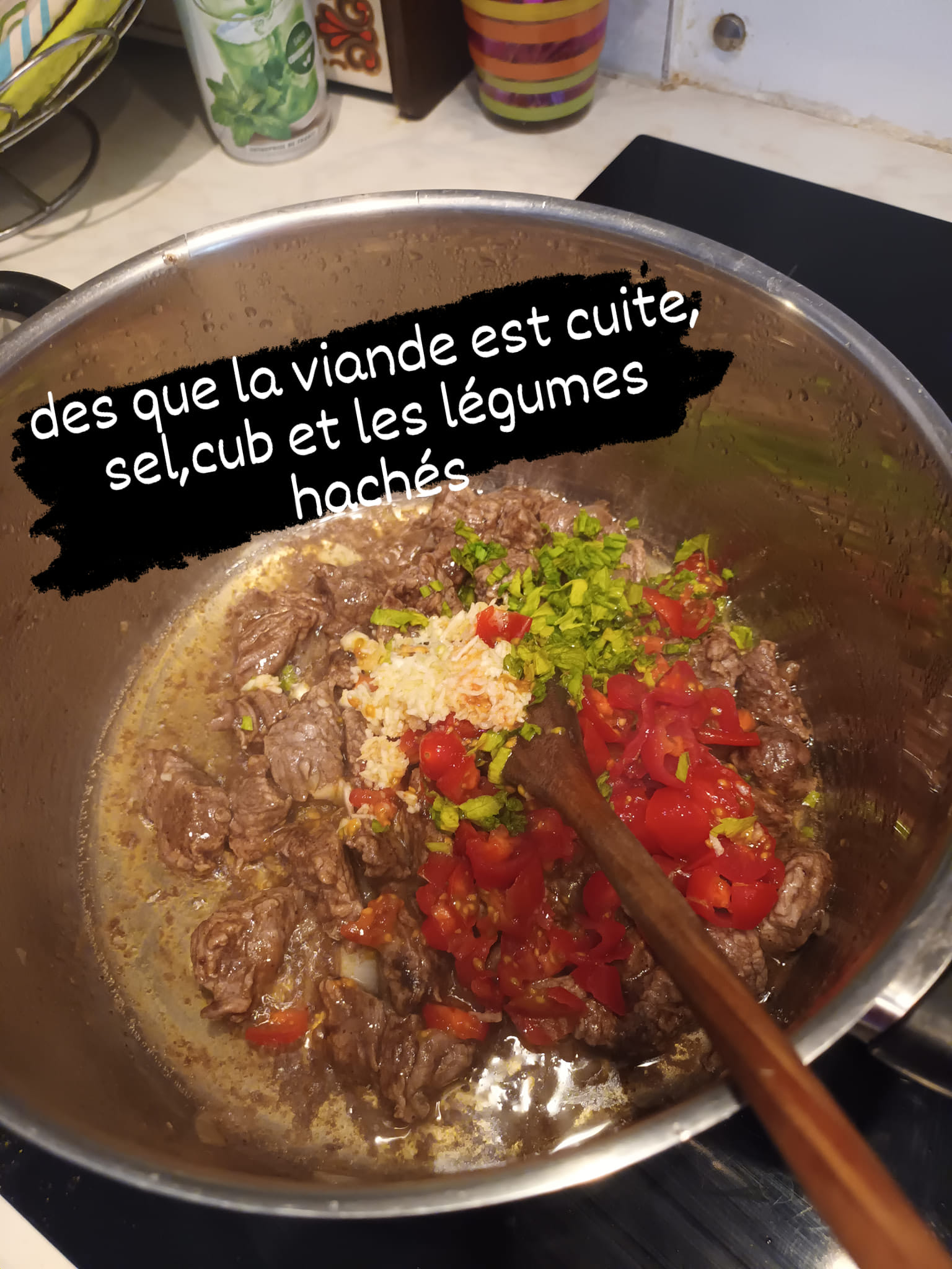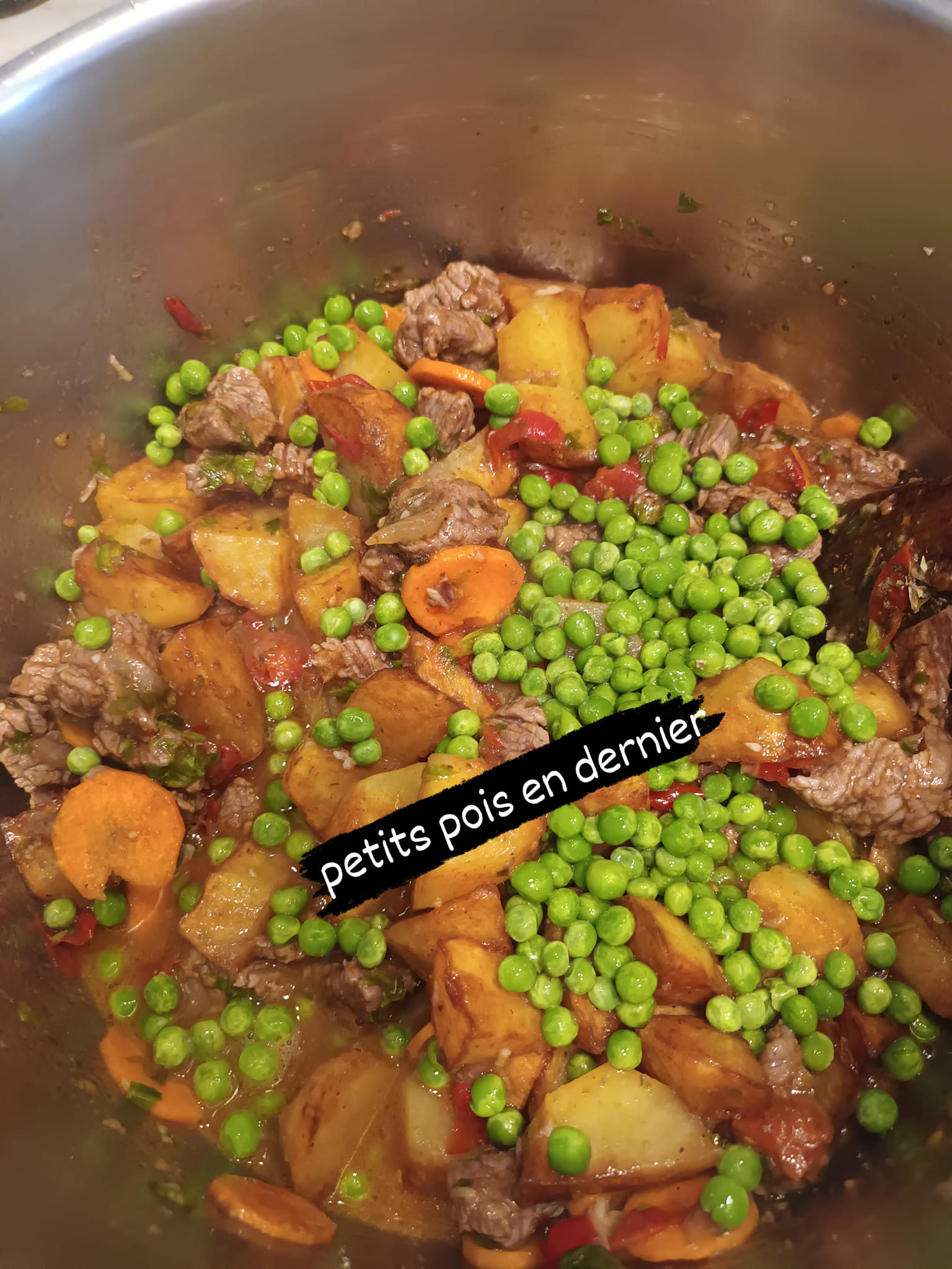 - Remettez les morceaux de viande dans la poêle avec les légumes.