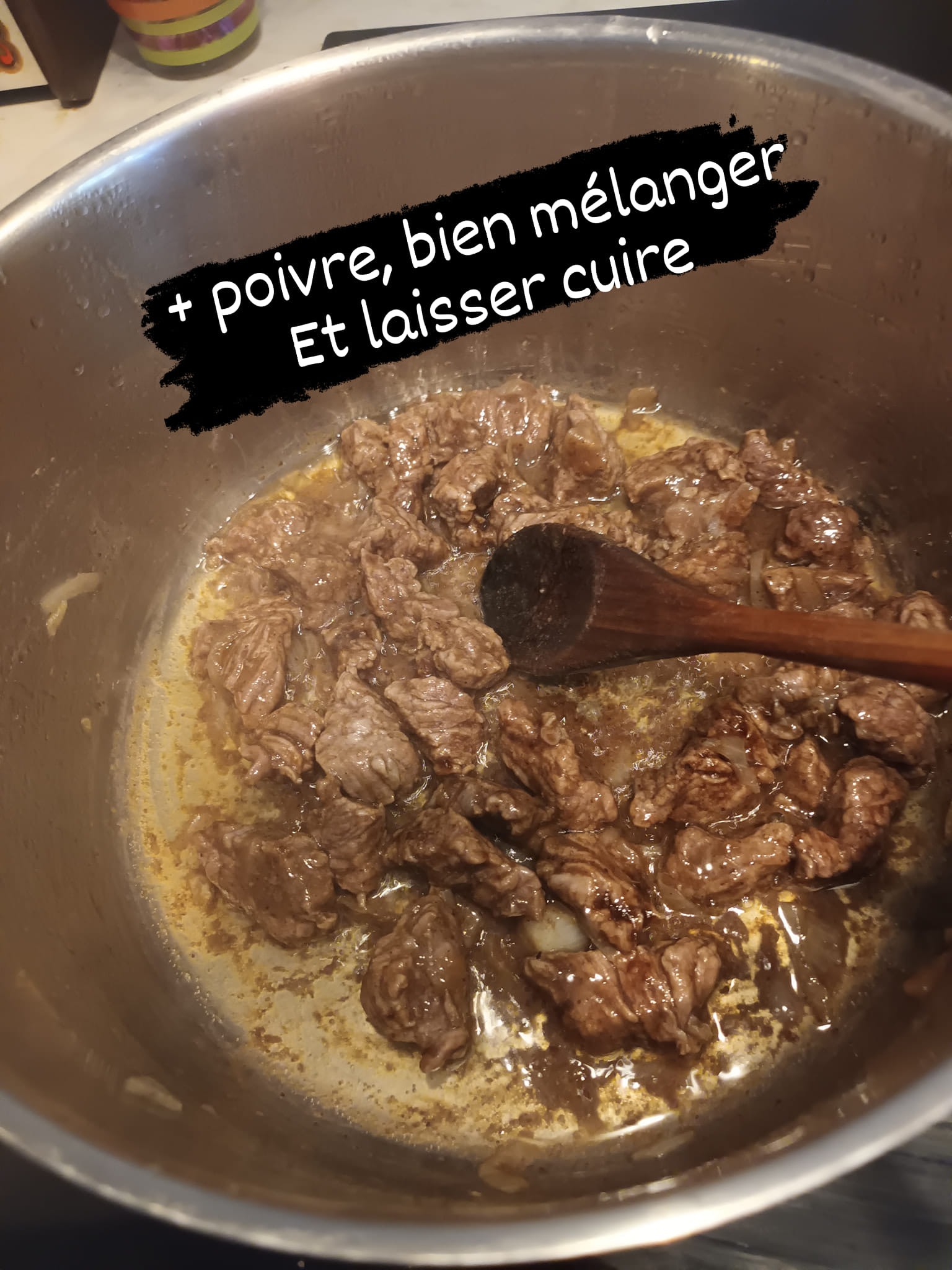 - Ajoutez les morceaux de viande marinés et faites-les dorer de tous les côtés jusqu’à ce qu’ils soient bien cuits. Retirez-les de la poêle et réservez.
