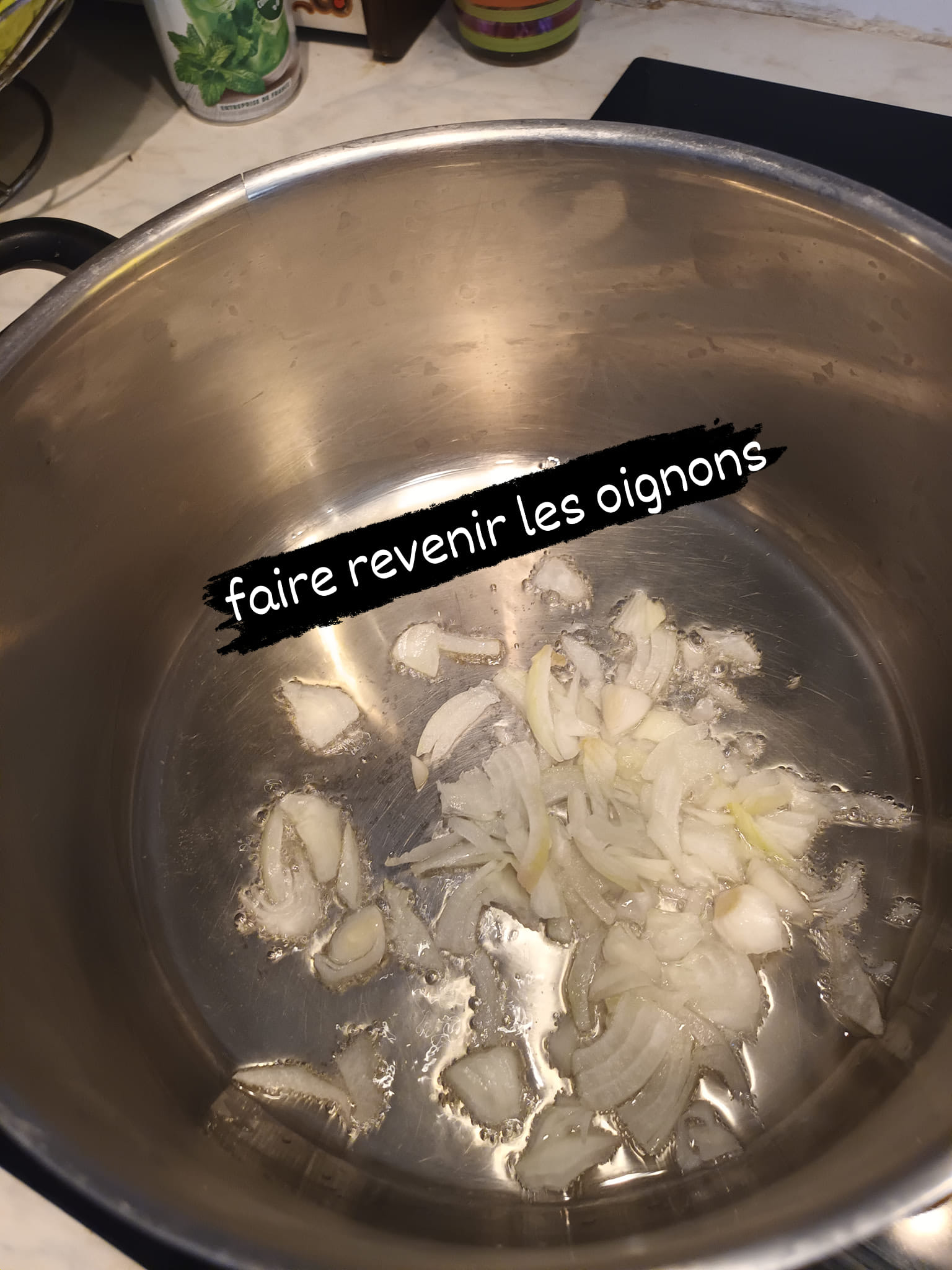 - Incorporez les oignons émincés et le reste de l’ail haché. Faites revenir jusqu’à ce qu’ils soient translucides.