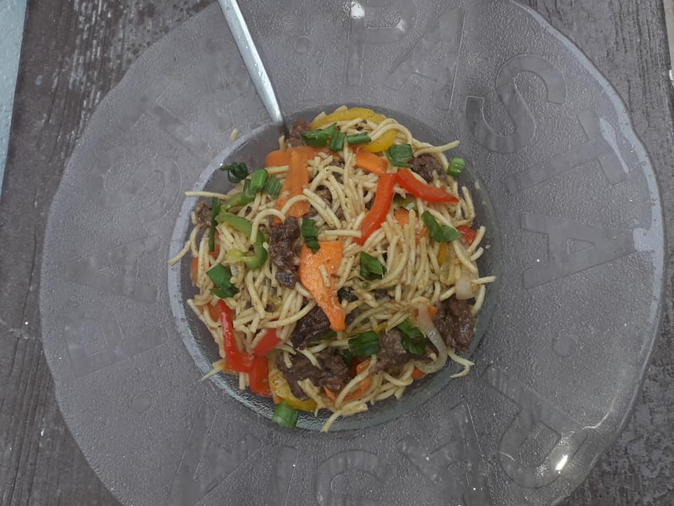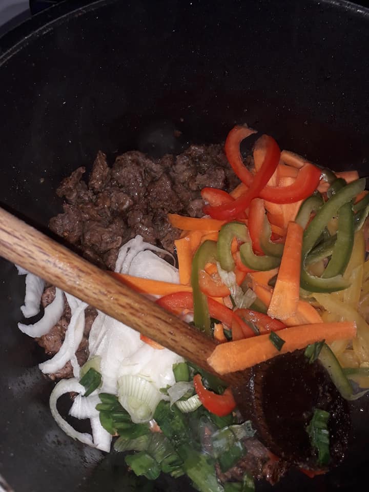 Savourez ces Spaghettis Épicés à la Viande et aux Légumes, un plat savoureux qui allie la tendreté de la viande, le croquant des légumes et une touche piquante pour éveiller vos papilles.