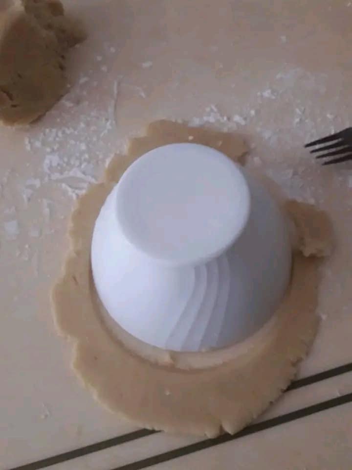 - À l’aide d’une tasse ou d’un emporte-pièce, découpez des disques dans la pâte.