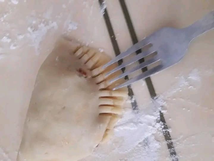 - Repliez le disque en deux pour former une demi-lune et pressez les bords avec une fourchette pour les sceller.
