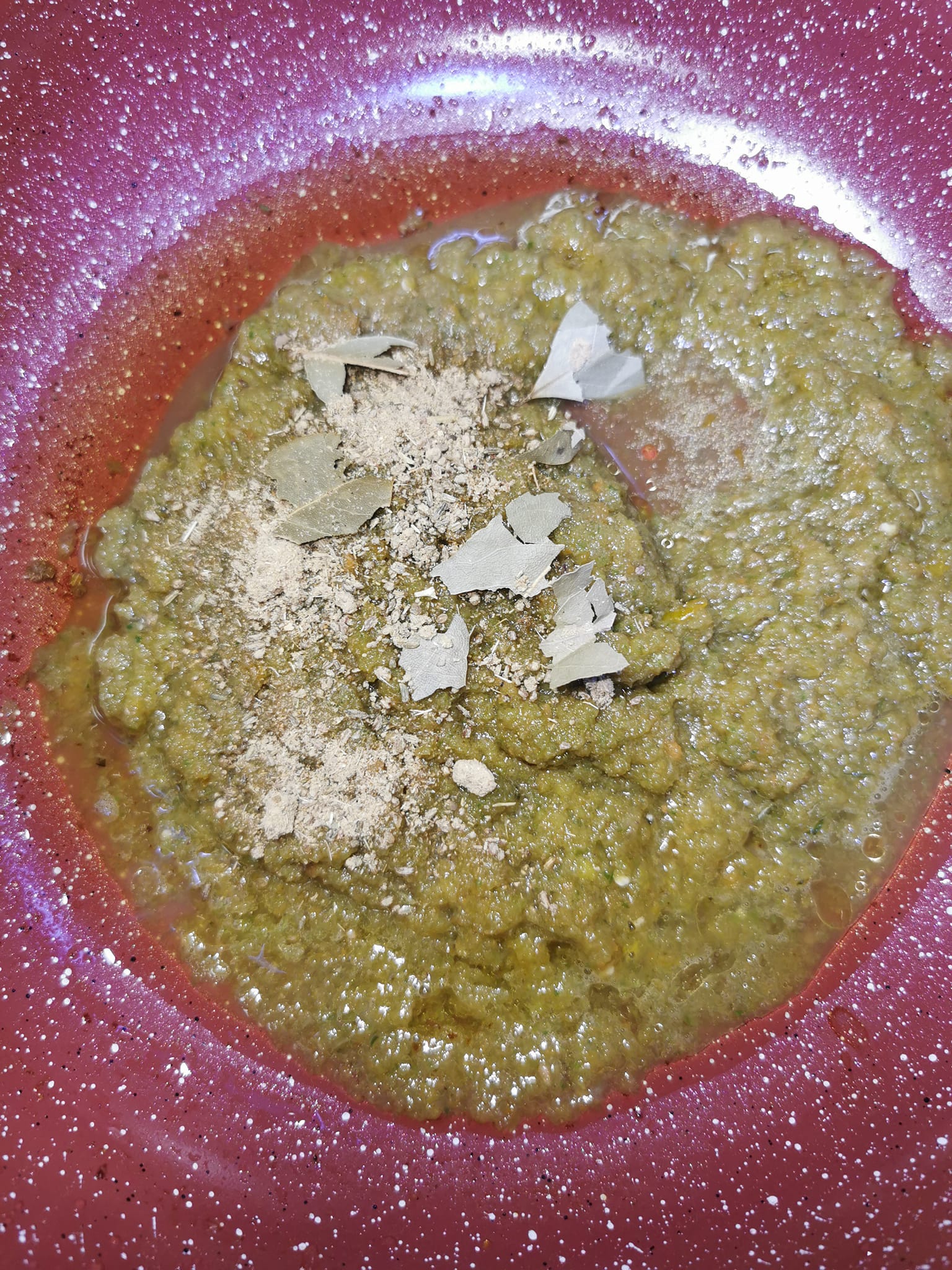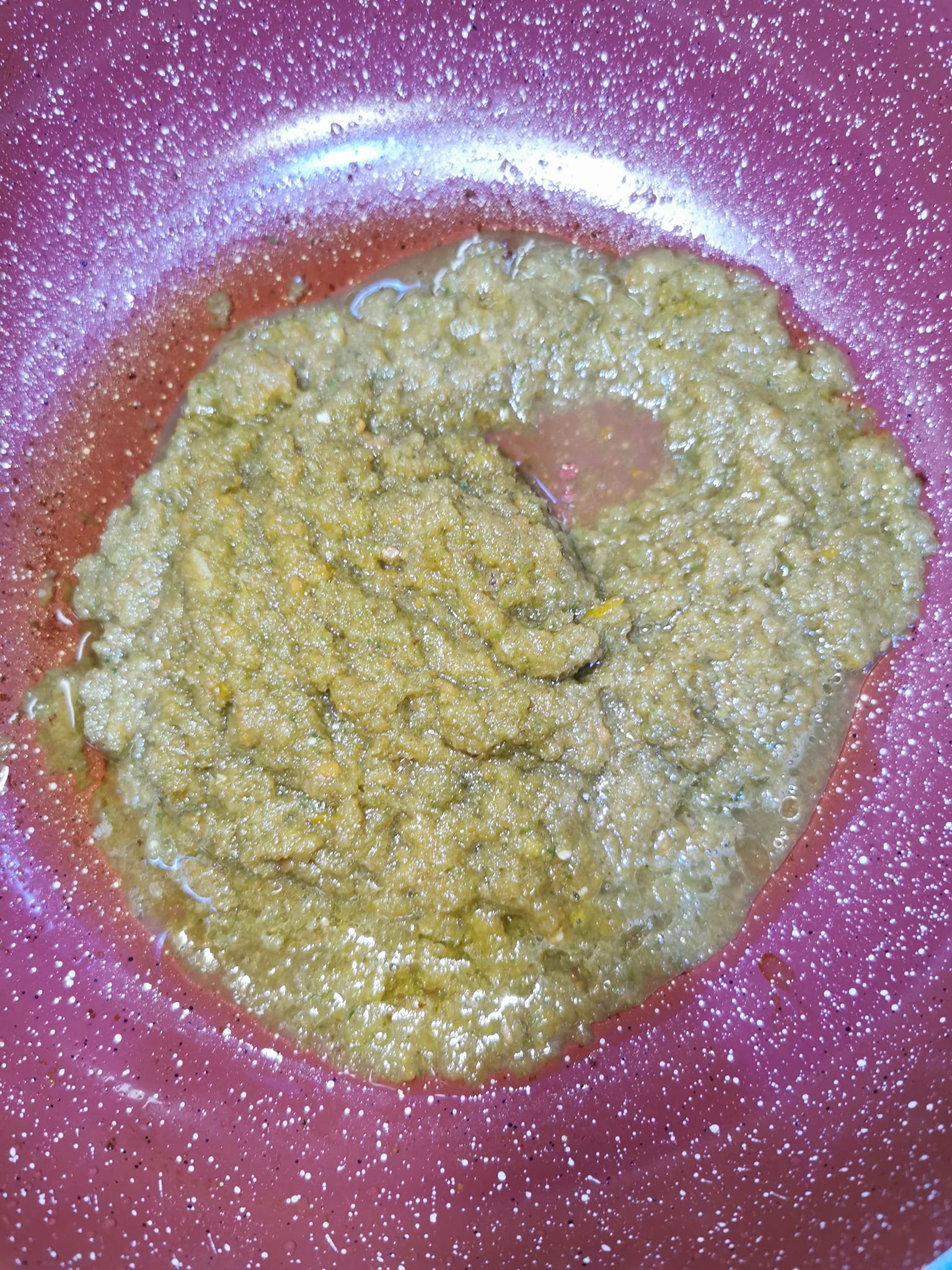 - Dans une casserole, faites chauffer un peu d’huile à feu moyen. Ajoutez la purée de légumes mixés, puis assaisonnez avec les épices pour poisson et du sel ou du bouillon de cube. Laissez cuire pendant environ 10 minutes à feu doux.