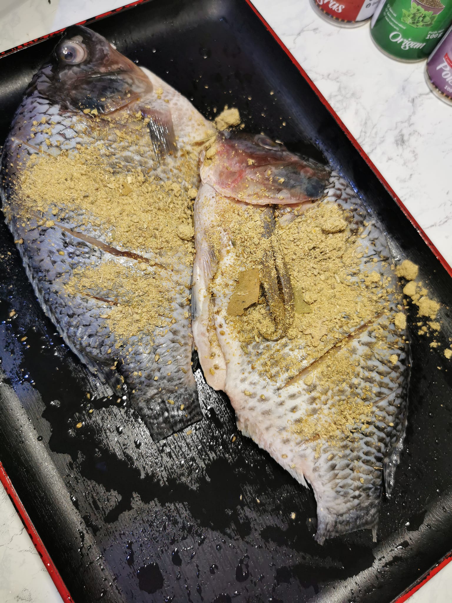 - Assaisonnez-les avec les épices spéciales pour poisson et du sel ou du bouillon de cube. Laissez mariner pendant environ 15 minutes.