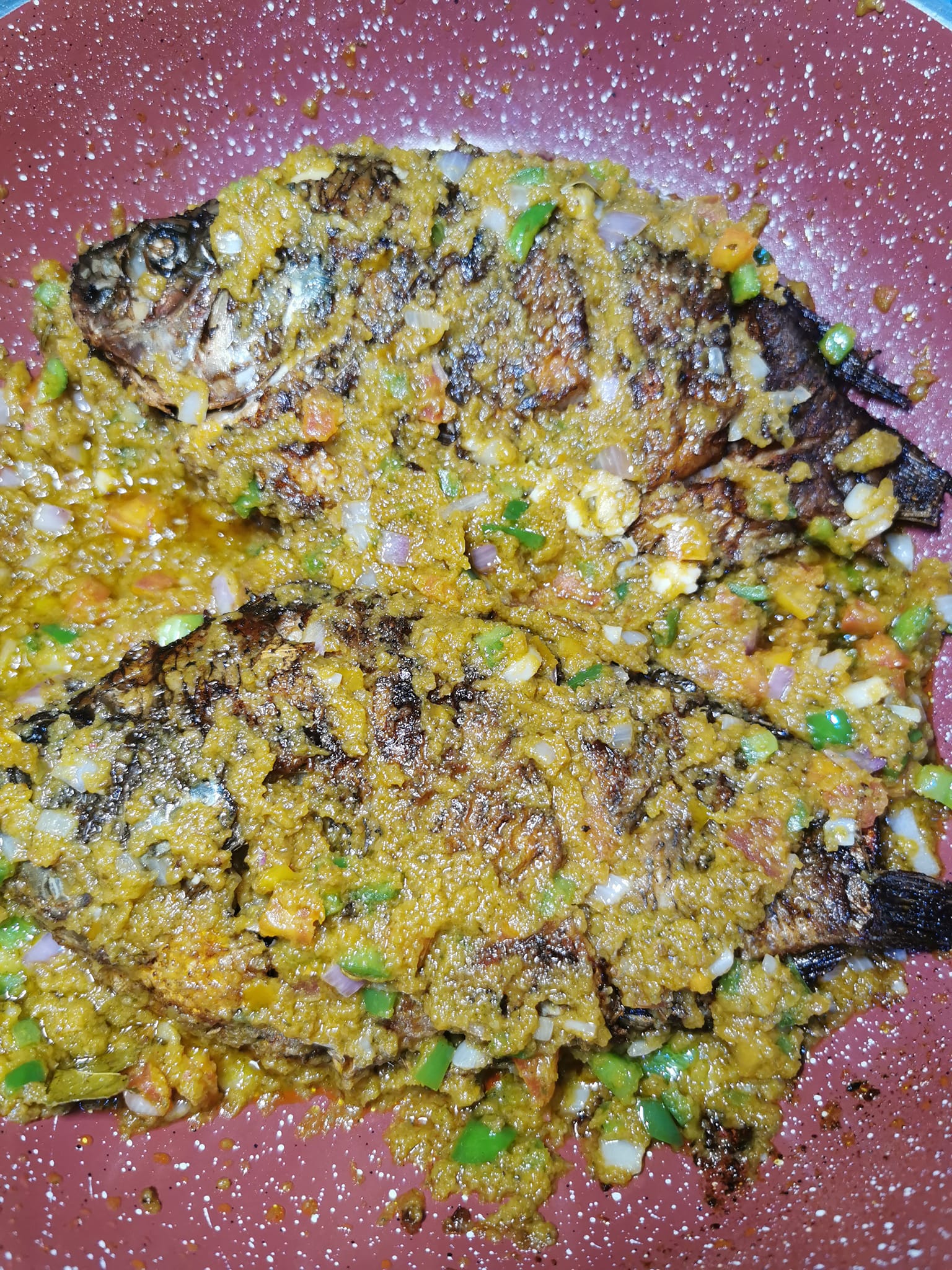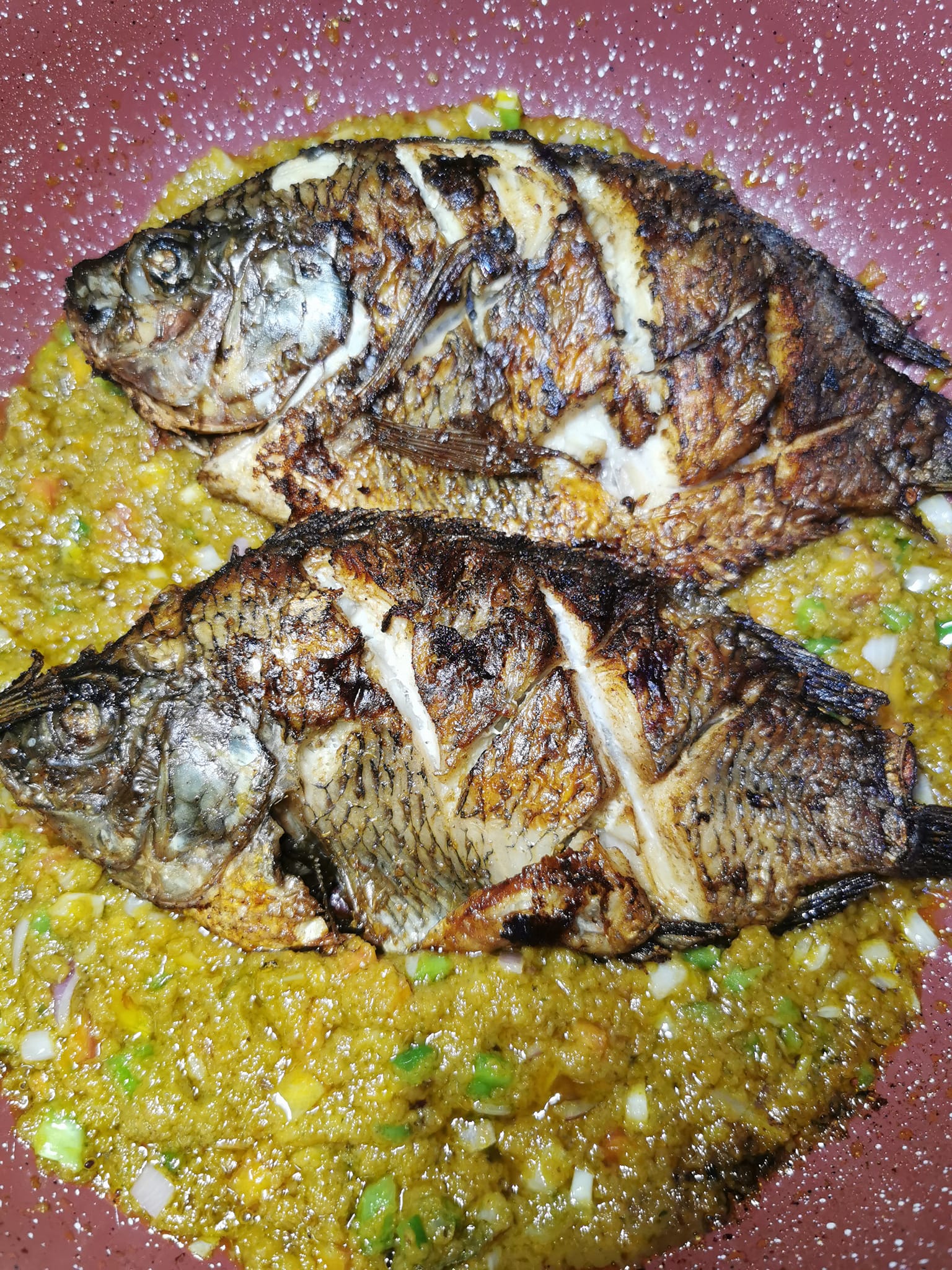 - Incorporez les poissons frits dans la sauce préparée. Laissez mijoter pendant 5 minutes pour que les saveurs se mélangent bien.