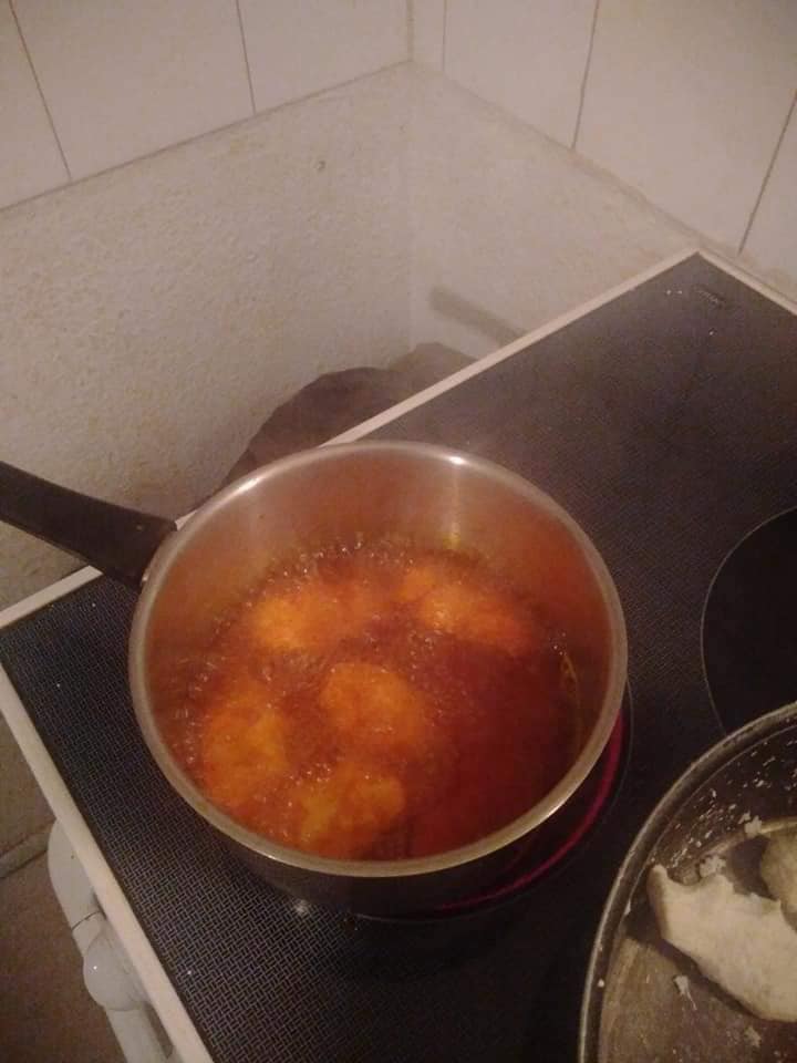 - Formez de petites boules avec la pâte de manioc et plongez-les délicatement dans l’huile chaude.
